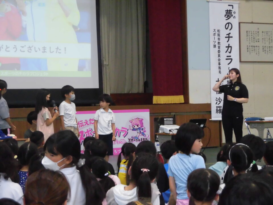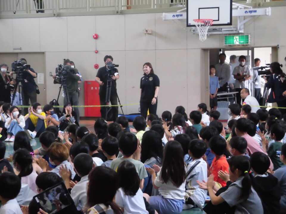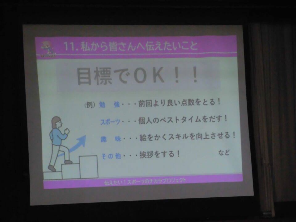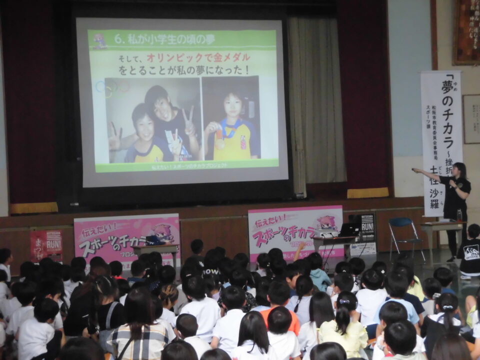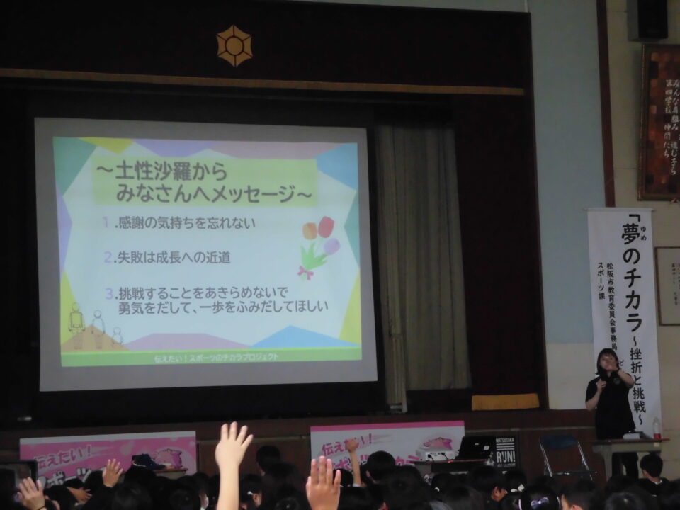 今日のにっこり集会は、本校卒業生の土性沙羅さんに来ていただき、自分の夢や目標に向かう秘訣を教えていただきました。また、その先に見える景色はとても素晴らしいものだというご自身の経験を伝えていただきました。成し遂げた方の言葉は、説得力がありました!!