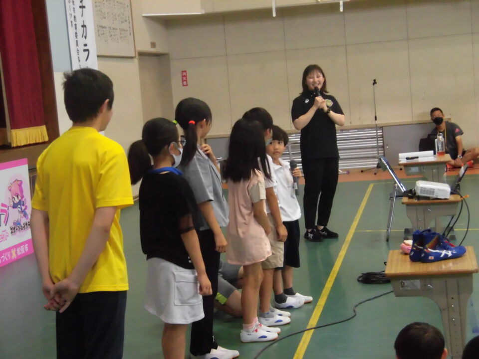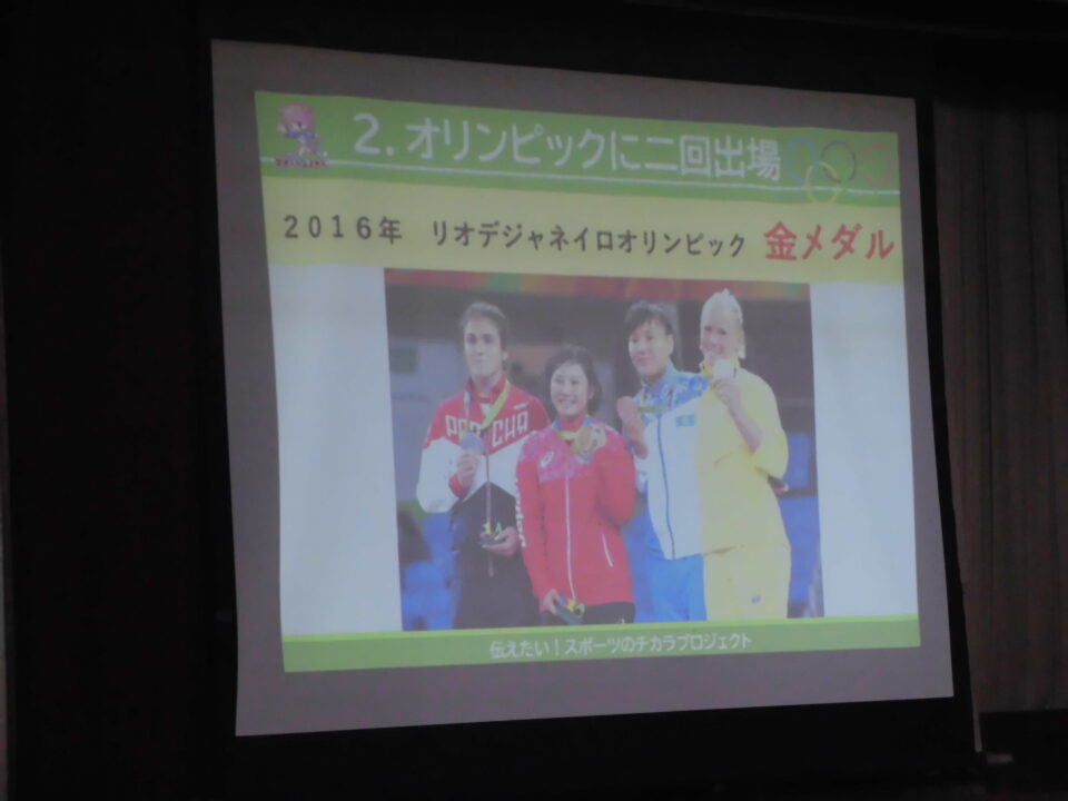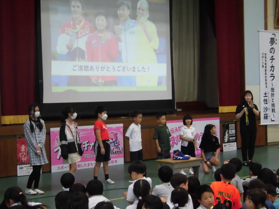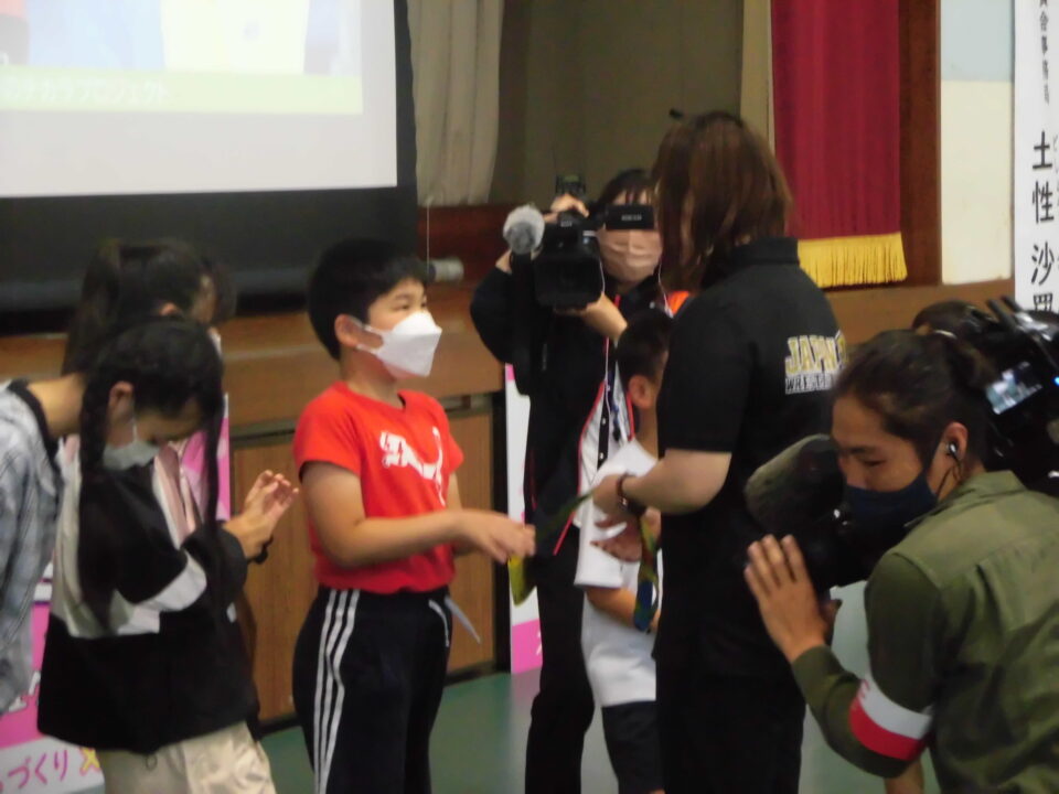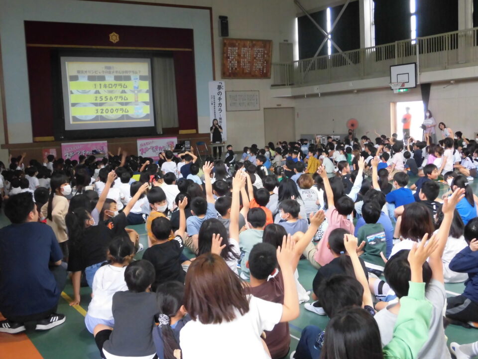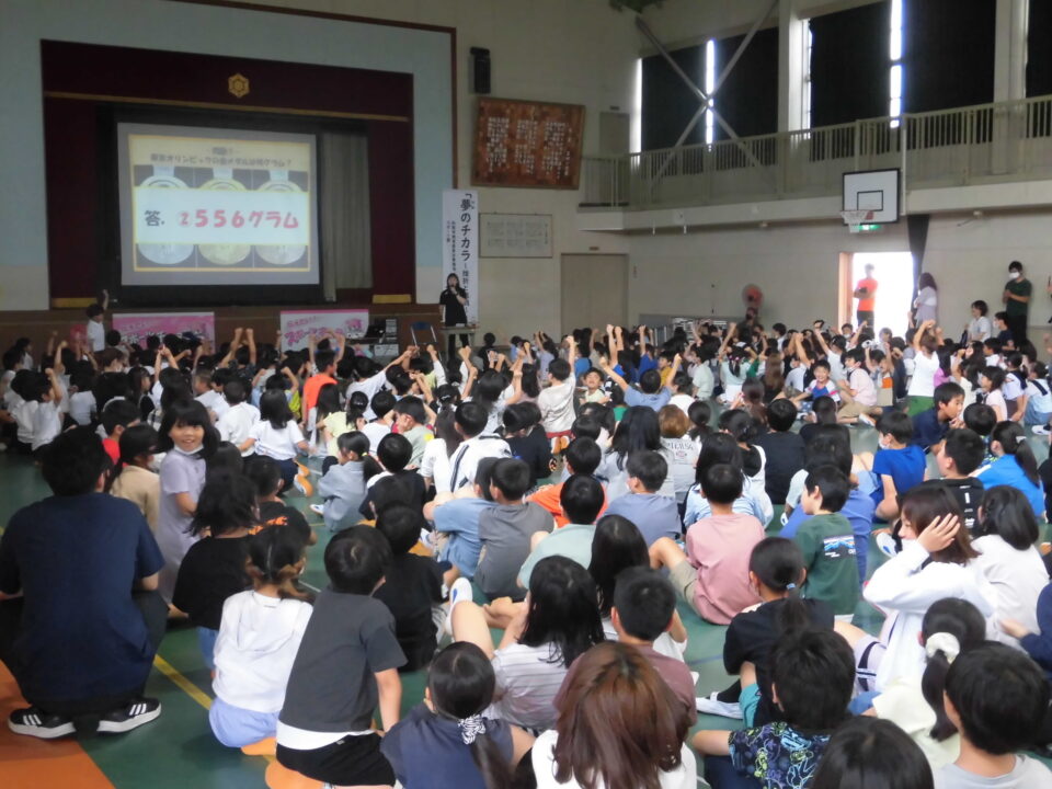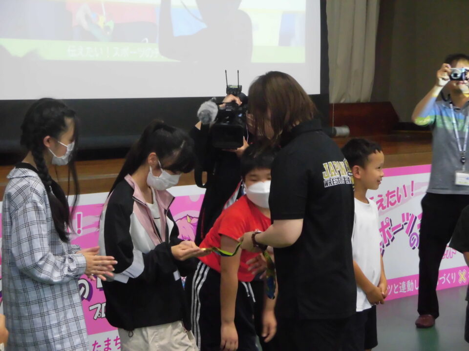 子どもたちからの質問コーナーや金メダルを触らせてもらうコーナーもありました。
