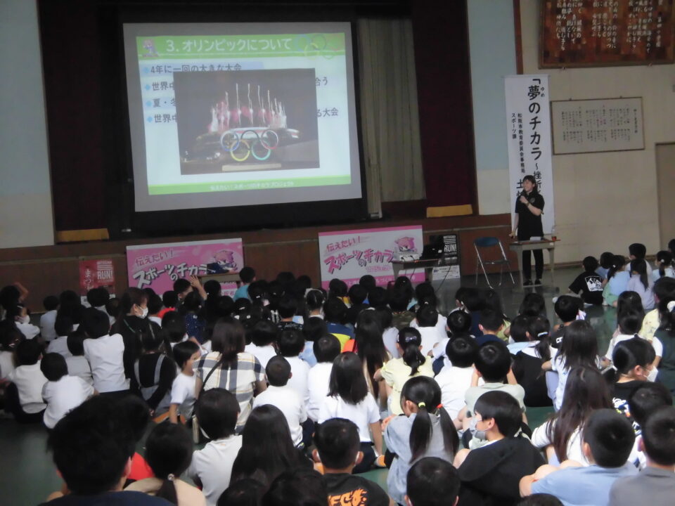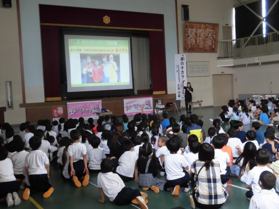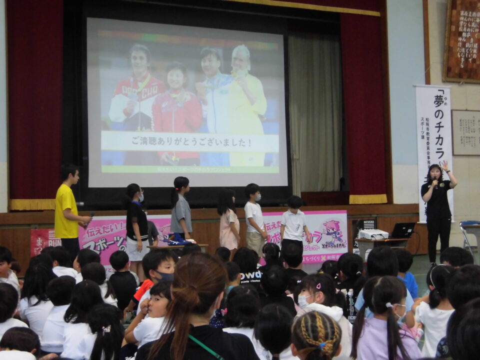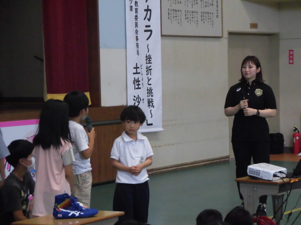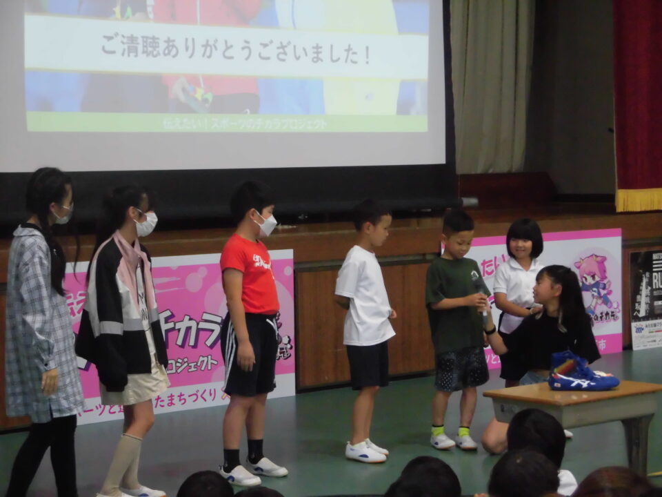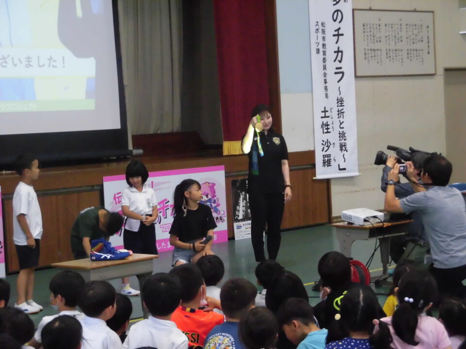 子どもたちからの質問コーナーや金メダルを触らせてもらうコーナーもありました。