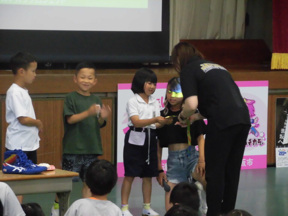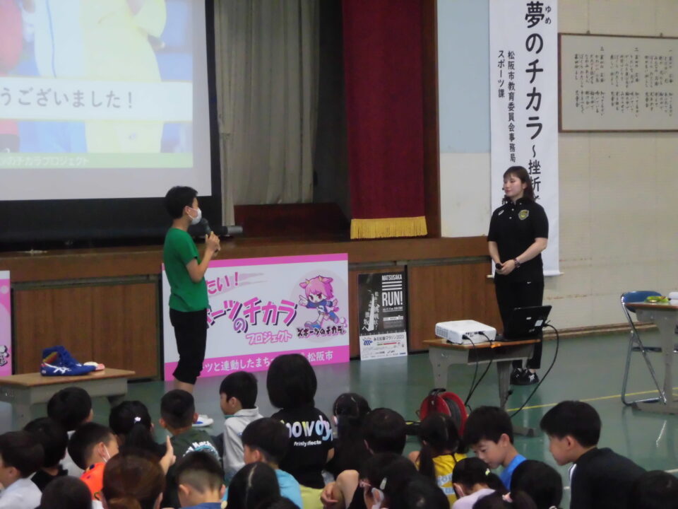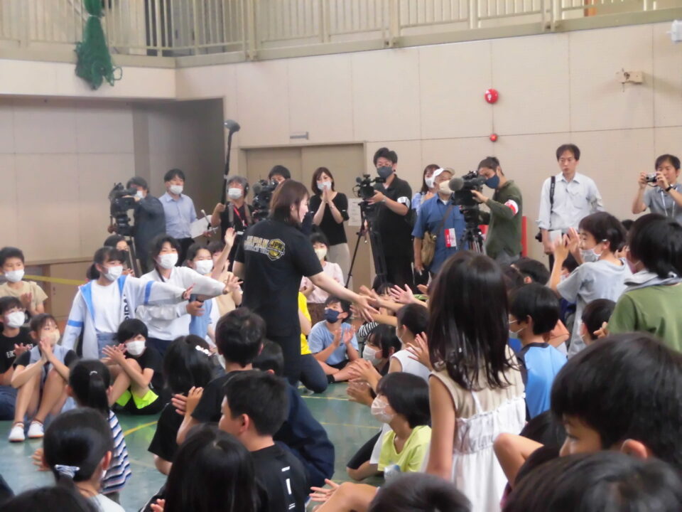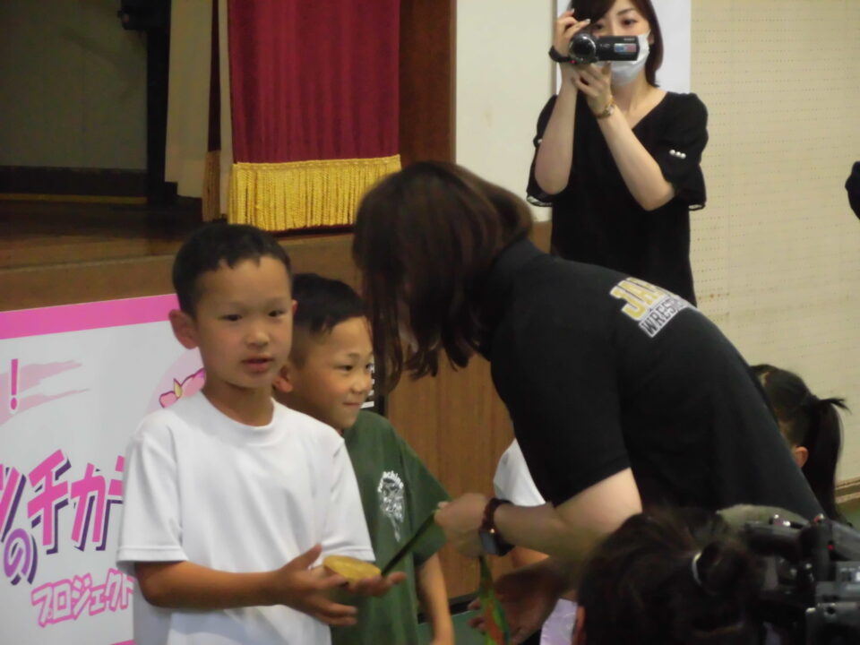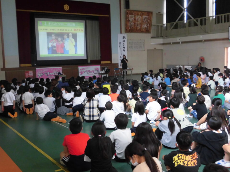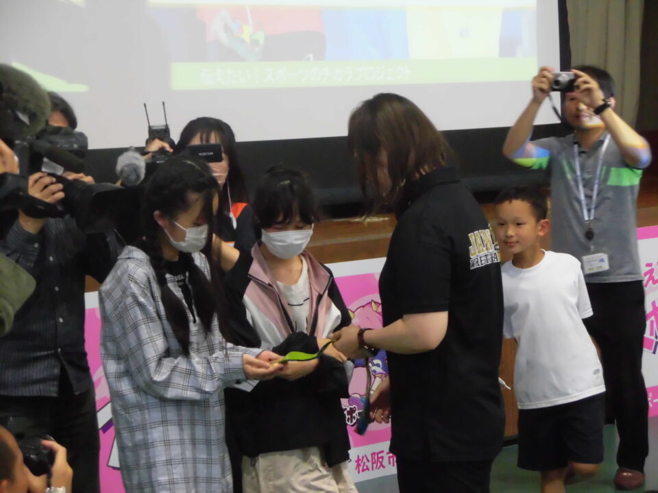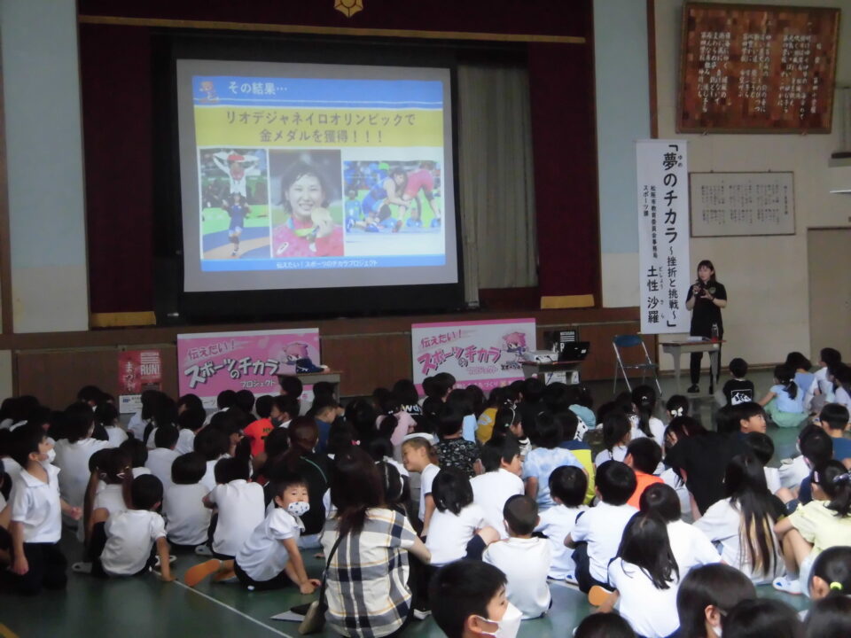 子どもたちからの質問コーナーや金メダルを触らせてもらうコーナーもありました。