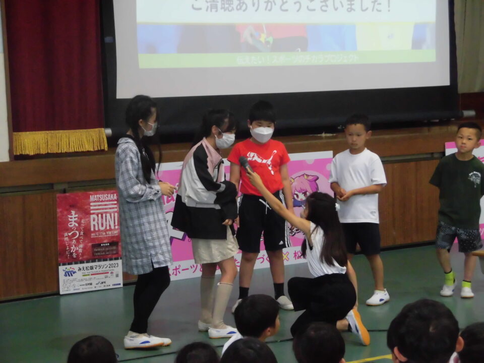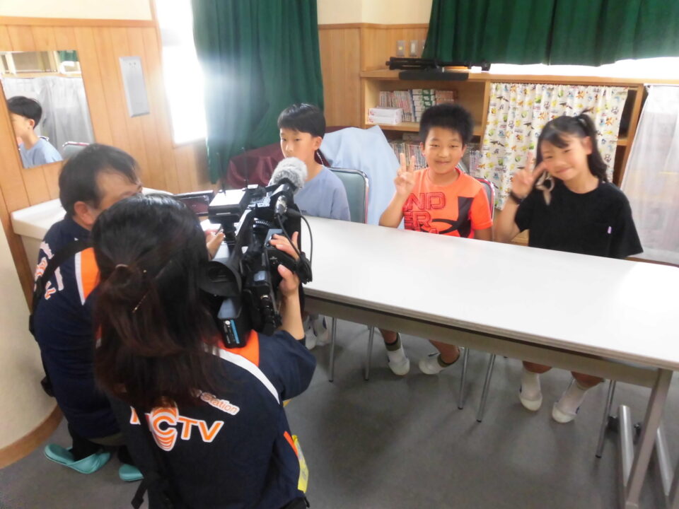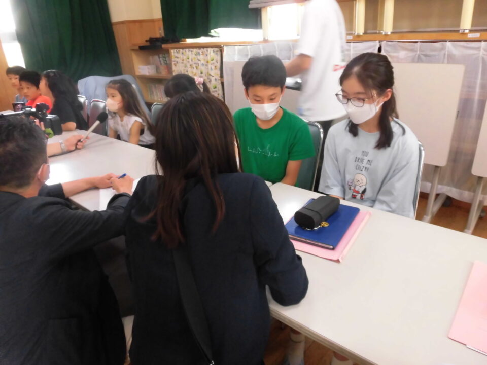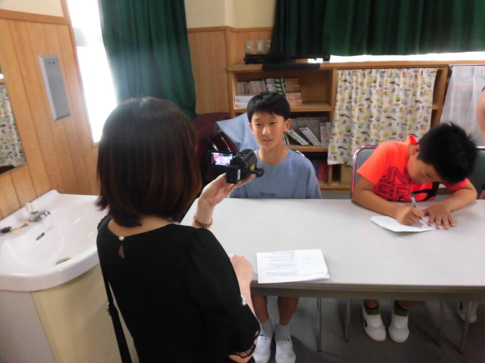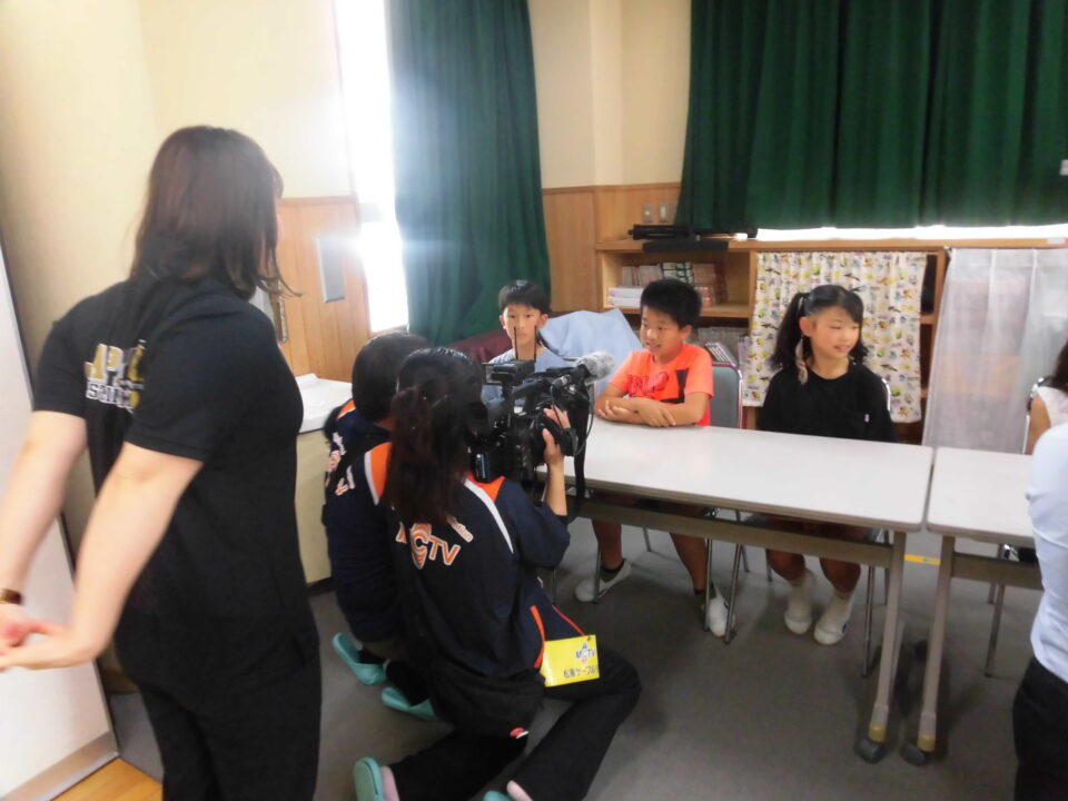 前期児童会役員さんたちは、今日まで集会の司会進行の準備やインタビューにも対応していました。がんばりましたね。