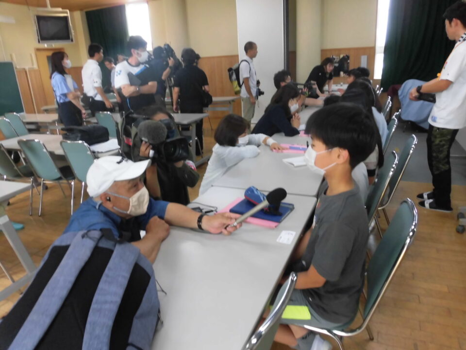 集会後、多目的室にて報道インタビューがありました。