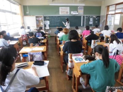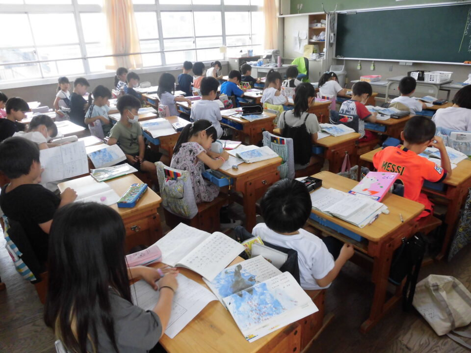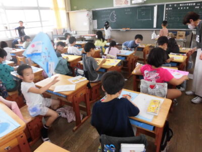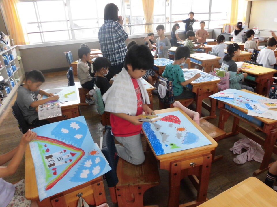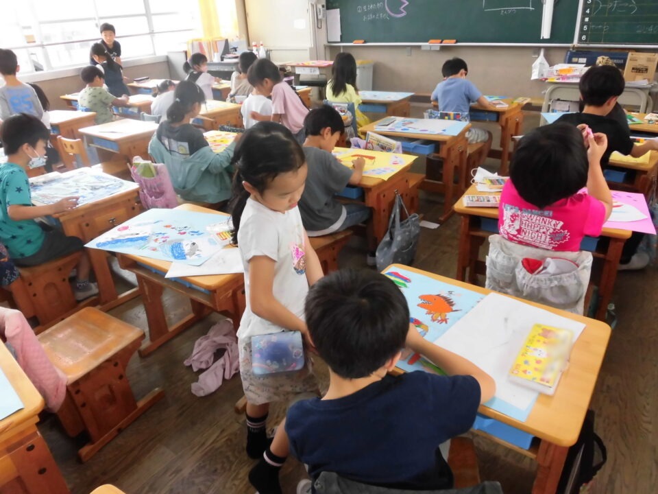 2年生では、国語科で、みんなでじっくり読んで考え、意見を出し合っていたり、図工で作品を仕上げているクラスもありました。卵がパカっと割れて何か飛び出してきていますね。