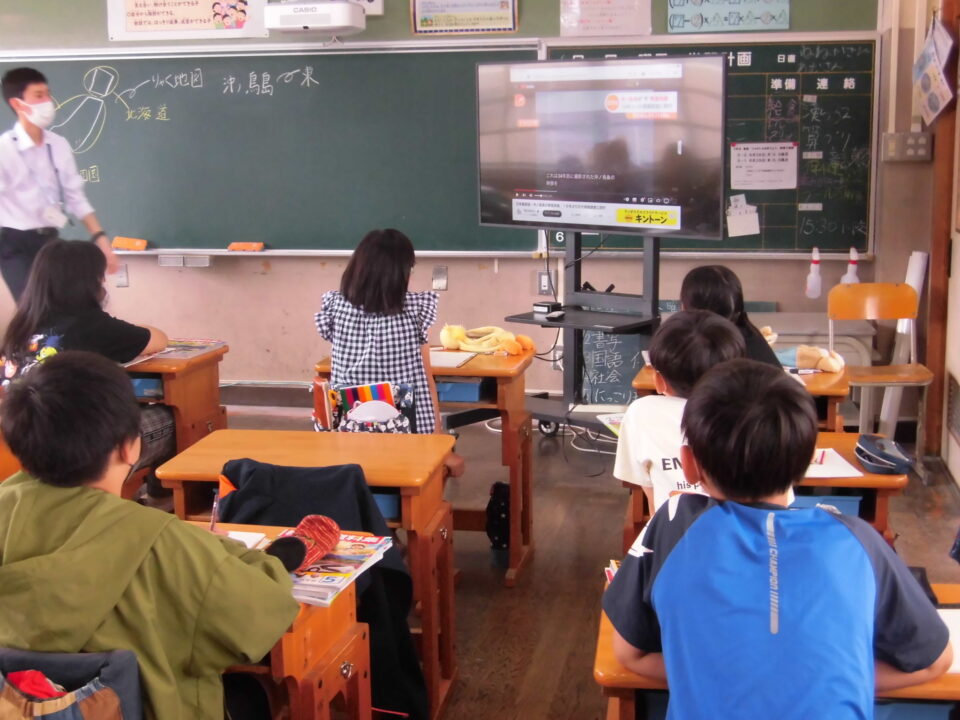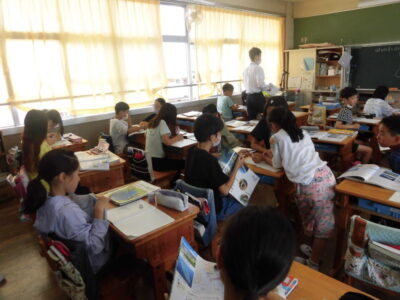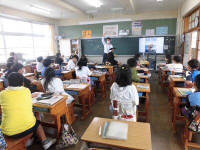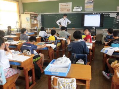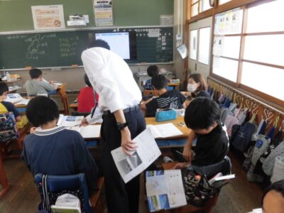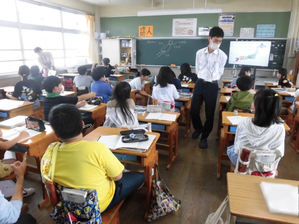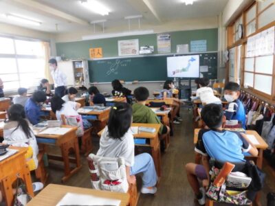 「この内容は、中学校でまた詳しく勉強する内容やよ!」と、中学校での社会科の学習のことにも触れてもらい、子どもたちは、意欲的に取り組むことができました。