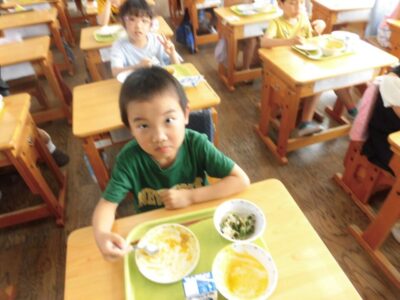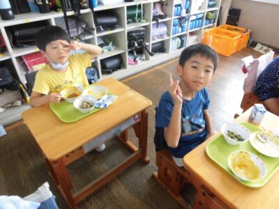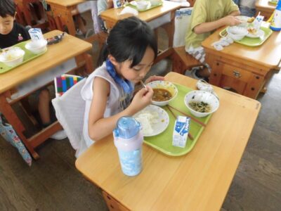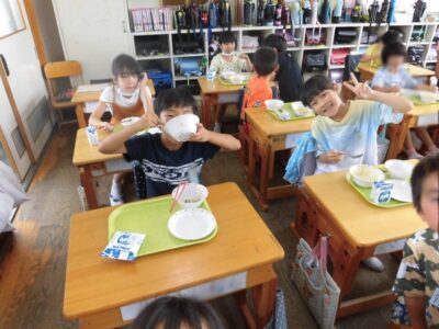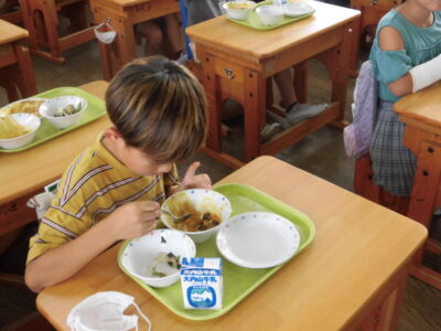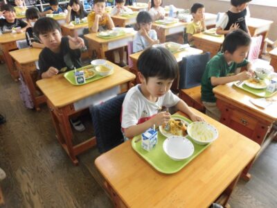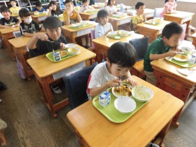 年生ねんせいたちが、おいしい給食きゅうしょくをペロリとたいらげていました。