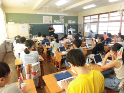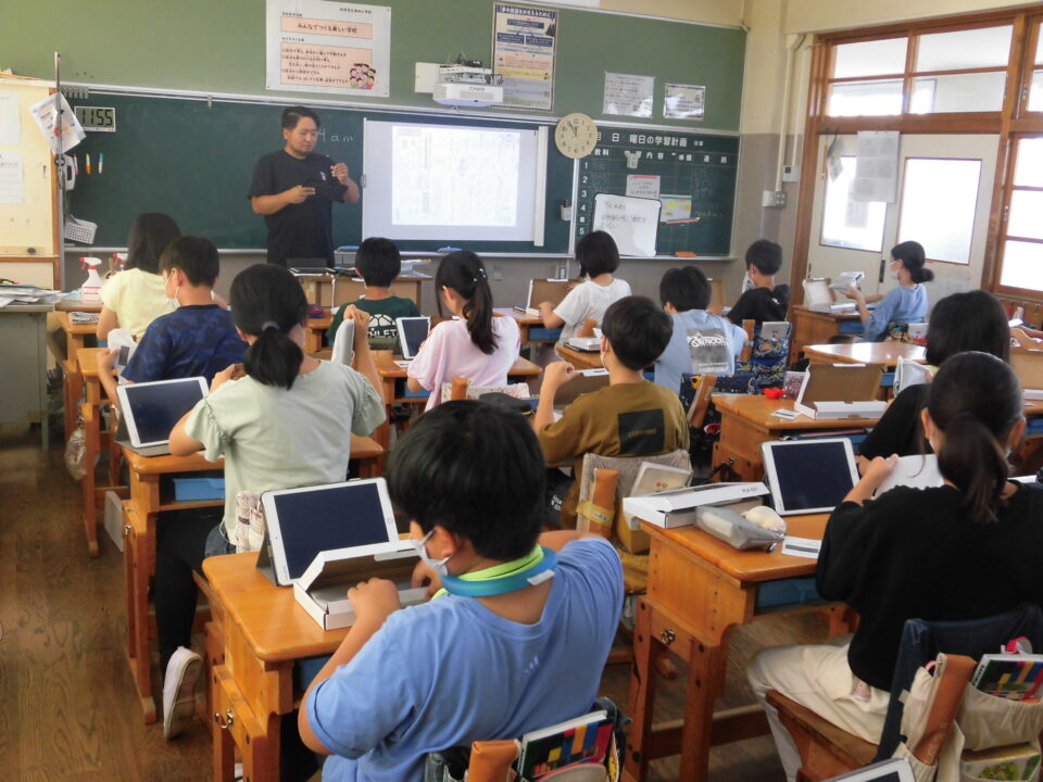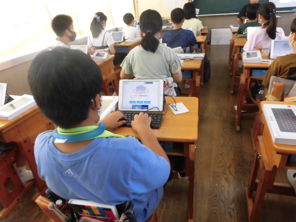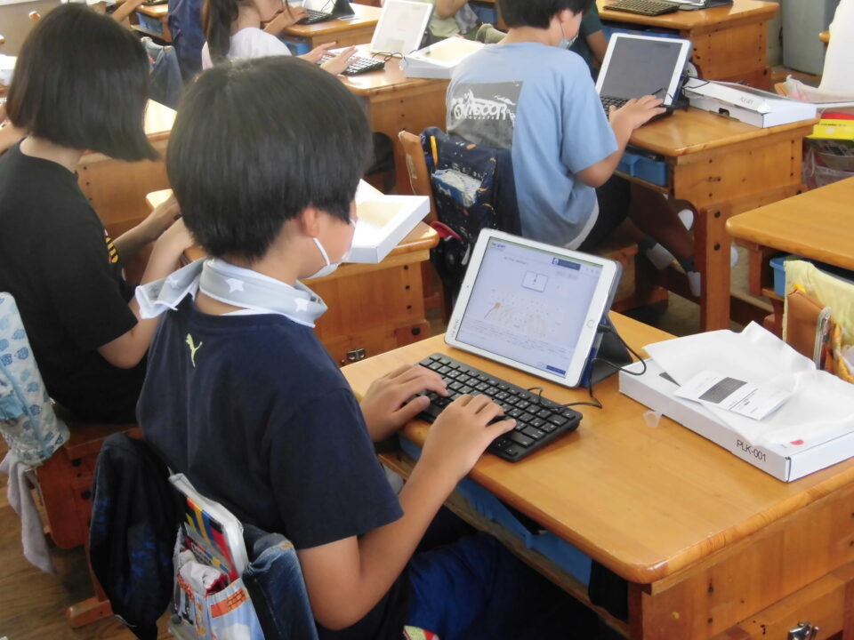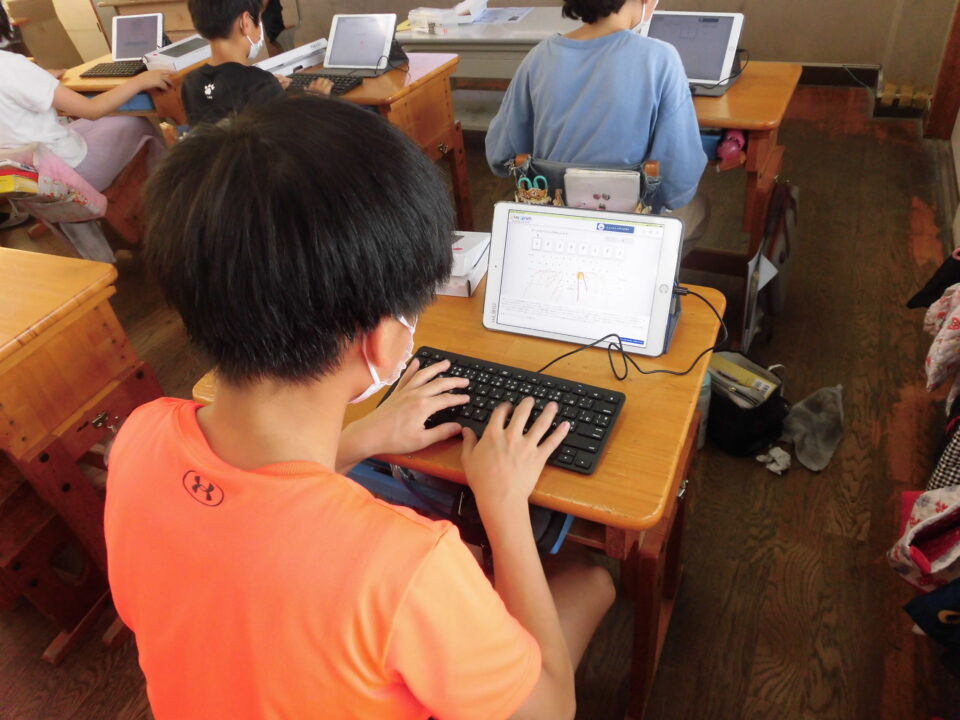 今年の夏休みは、タブレット端末専用のキーボードを使って、5,6年生の人にはタイピングの練習をしてもらいます。