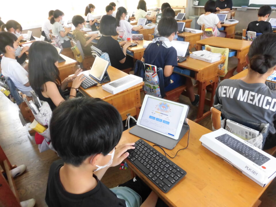 松阪市では、GIGAスクール構想により1人1台タブレット端末を貸し出ししていますが、キーボードも1人1台あります。5,6年生は、アプリを使ってキーボードに慣れるために、夏休みに挑戦してほしいです。