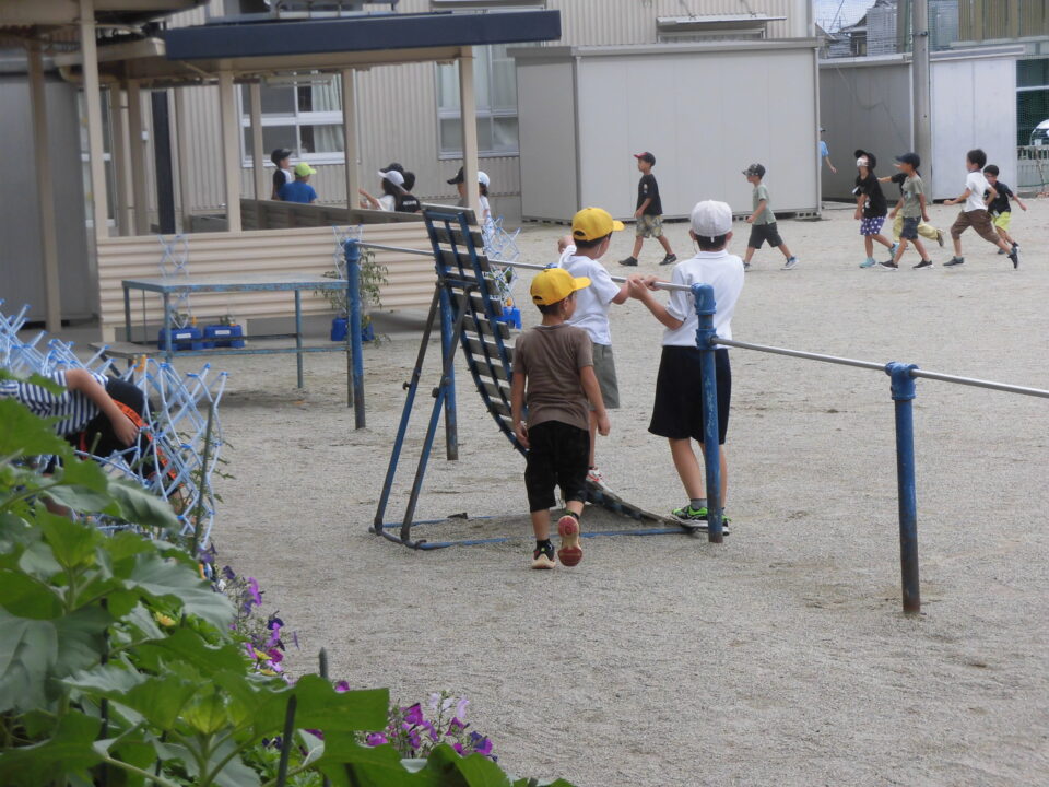 ここ最近は、熱中症アラートが「危険」をさしていたので、校舎内の涼しいところで過ごしましたが、今日は、曇りだからか、大丈夫でしたので、久しぶりに運動場で休憩することができました。