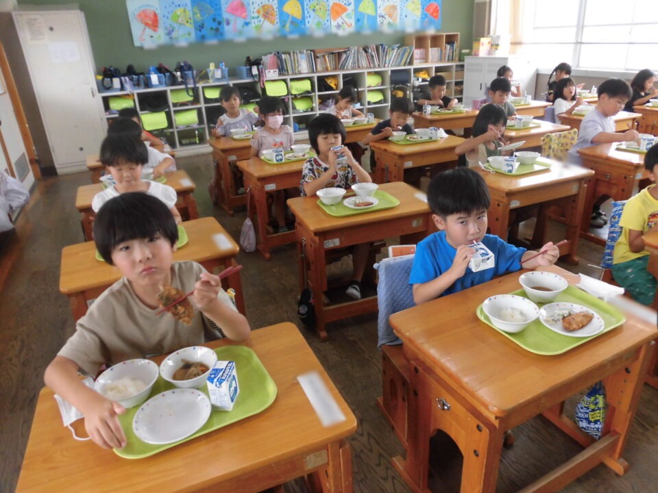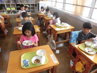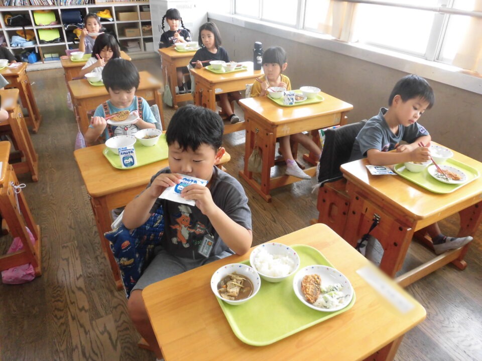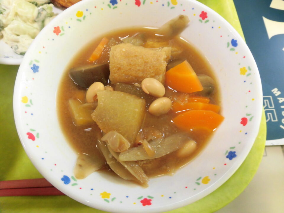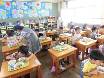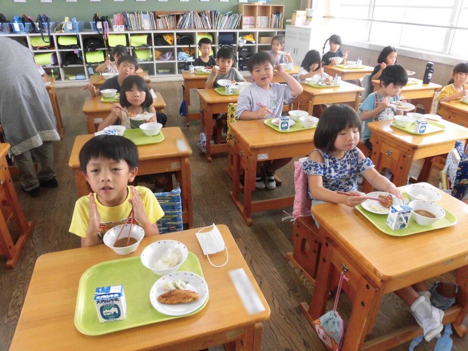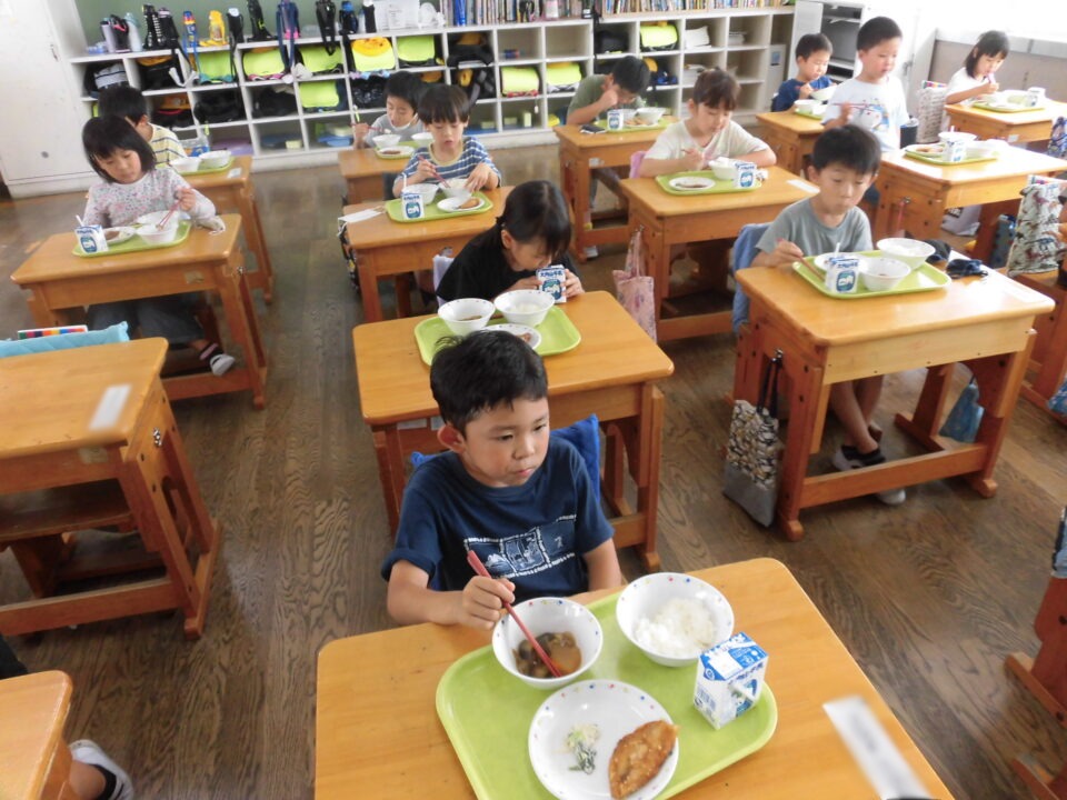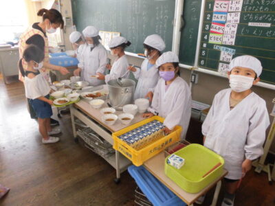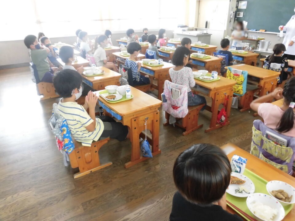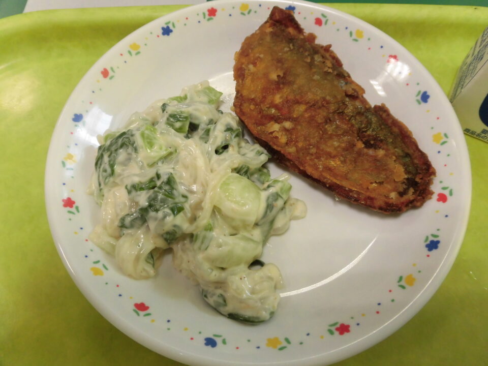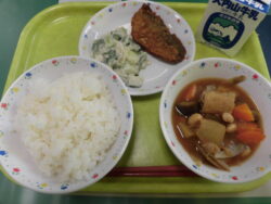 ホーム > 学校活動の様子 給食(きゅうしょく)「和食(わしょく)の日(ひ)」 今日(きょう)の給食(きゅうしょく)は、「和食(わしょく)の日(ひ)」でした。 ご飯(はん)、牛乳(ぎゅうにゅう)、あじの竜田揚(たつたあ)げ、こんにゃくサラダ、とうがん入(い)り盆汁(ぼんじる)です。 1年生(ねんせい)のみんなは、「おいしい~~(^^♪」と言(い)って、食(た)べていました。 給食当番(きゅうしょくとうばん)さんもがんばって仕事(しごと)をしていましたね。 シェアする Twitter でシェア はてなブックマークに保存 LINE でシェア Facebook でシェア Pocket に保存 Feedly で購読 関連投稿 学校活動の様子 地区別授業参観(ちくべつじゅぎょうさんかん) 2限目(げんめ) 学校活動の様子 運動会(うんどうかい) ダンス・表現(ひょうげん)の練習(れんしゅう) 学校活動の様子 分散登校2日目 学校活動の様子 学習(がくしゅう)の様子(ようす)1,2年生(ねんせい) 学校活動の様子 プール開(びら)き6年生(ねんせい) 学校活動の様子 委員会活動スタート 前の投稿 保護者(ほごしゃ)の方(かた)ならびにご来校(らいこう)の皆様(みなさま)へ 次の投稿 夏休(なつやす)み前(まえ)に通学団会(つうがくだんかい)をしました