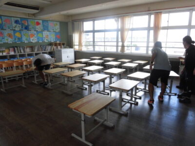 ホーム > 学校活動の様子 1年生教室(ねんせいきょうしつ) 机(つくえ)・椅子(いす)が新(あたら)しくなりました。 以前(いぜん)にもお伝(つた)えしましたが、今年(ことし)から順次(じゅんじ)、子(こ)どもたちの机(つくえ)と椅子(いす)が新(あたら)しくなっていきます。 本校(ほんこう)は、今日午後(きょうごご)に搬入(はんにゅう)してもらいました。 1年生(ねんせい)の皆(みな)さん、9月(がつ)からは新(あたら)しい机(つくえ)と椅子(いす)です。大切(たいせつ)に使(つか)ってくださいね。 シェアする Twitter でシェア はてなブックマークに保存 LINE でシェア Facebook でシェア Pocket に保存 Feedly で購読 関連投稿 学校活動の様子 学習(がくしゅう)の様子(ようす) 6年(ねん)、5年(ねん)、4年(ねん) 学校活動の様子 クラブ活動 学校活動の様子 修学旅行 おまけ 学校活動の様子 にっこり班出会いの会 学校活動の様子 / コミュニティ・スクール CDーRを寄付(きふ)していただきました 学校活動の様子 6年生(ねんせい)楽(たの)しくプール水泳(すいえい)が・・・((+_+)) 前の投稿 CS夏休(なつやす)み親子木工教室(おやこもっこうきょうしつ) 次の投稿 CS夏休(なつやす)みお楽(たの)しみ会(かい)