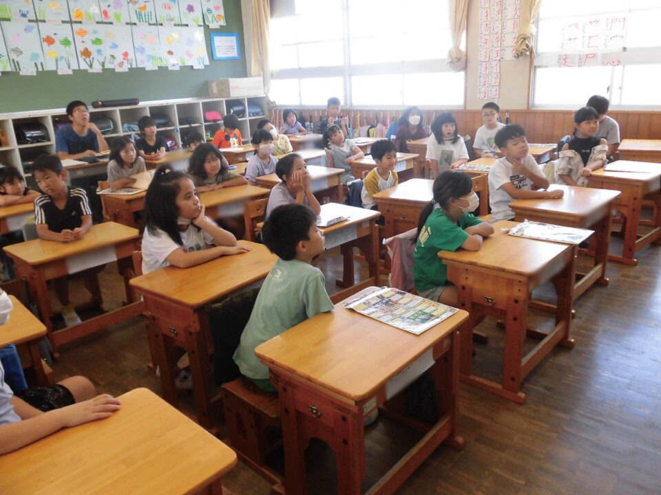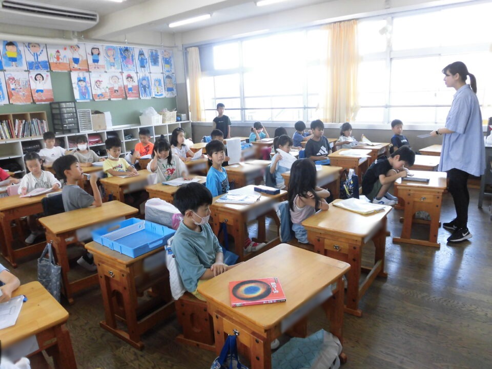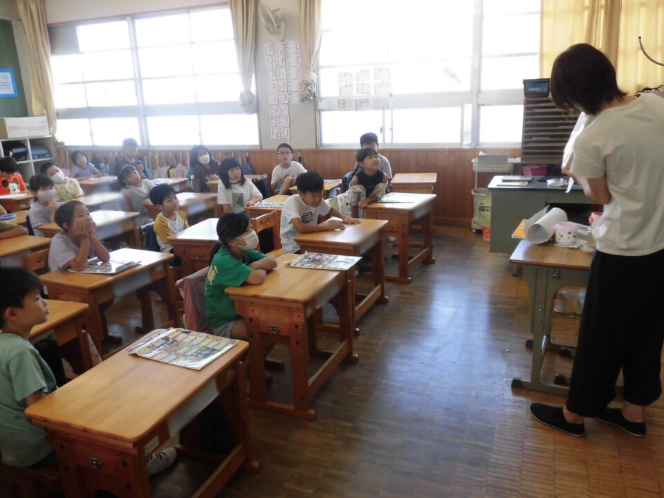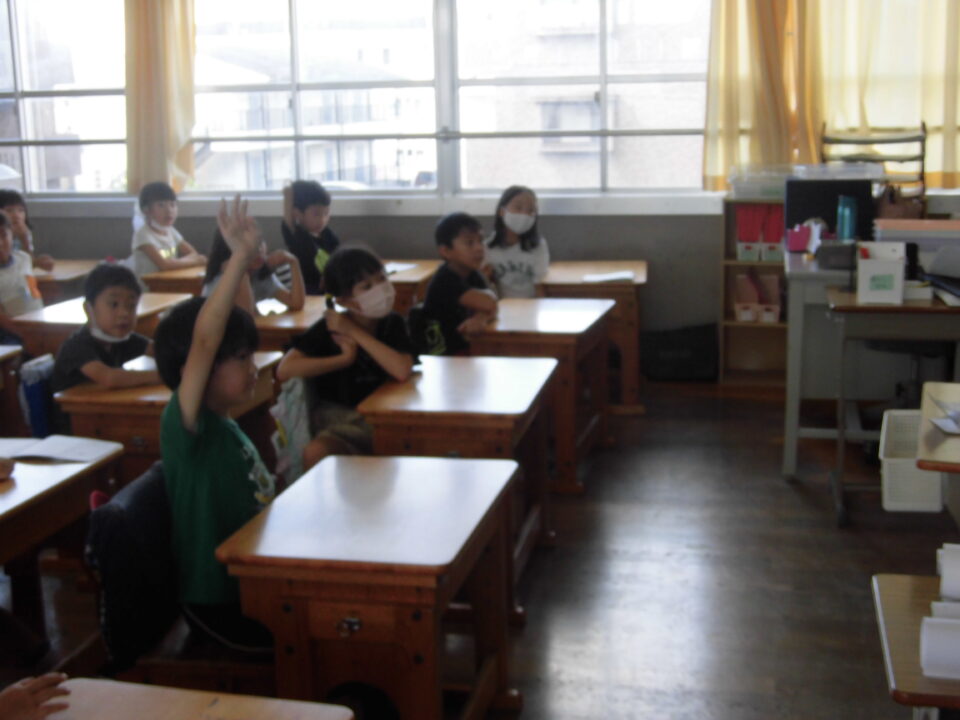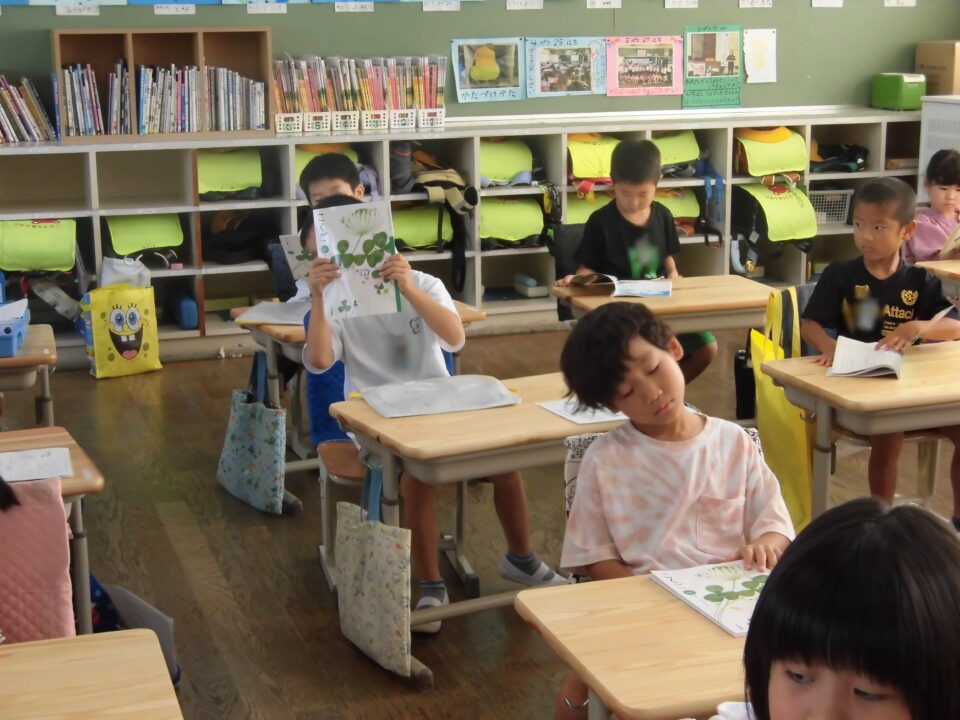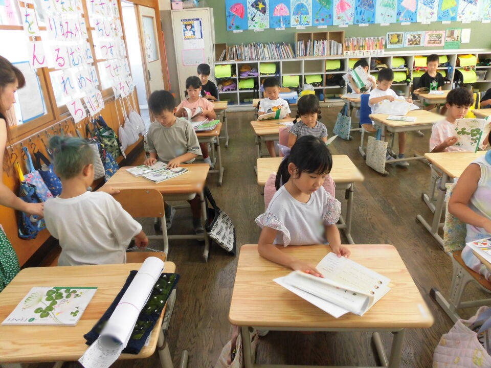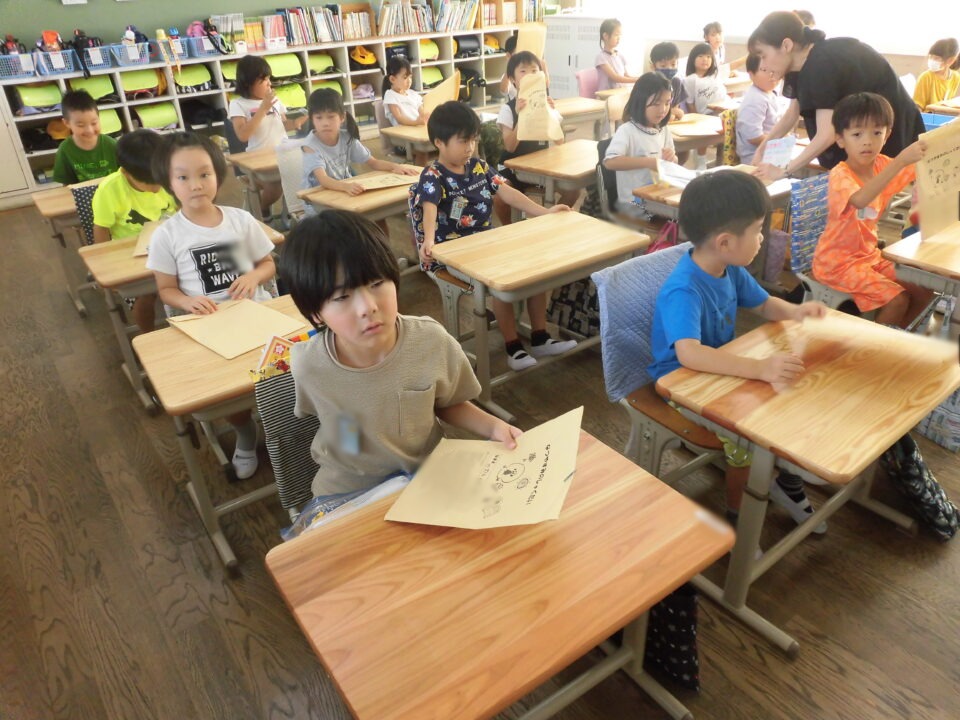 教室では、宿題や習字や絵の作品を担任の先生に提出していたり、さっそく確認テストをしたり、午前中半日とはいえ、クラスで久しぶりに会った友だちと一緒にまた今日から学校で学習モードに切り替えです。