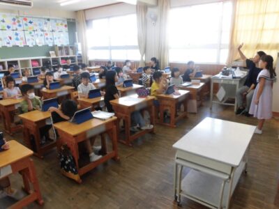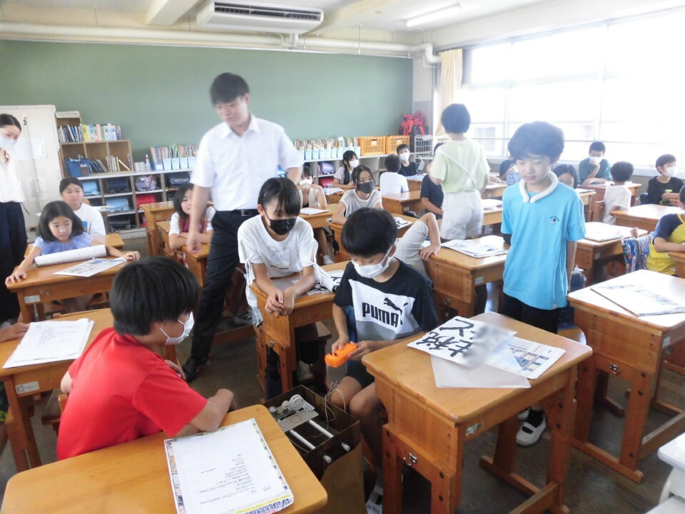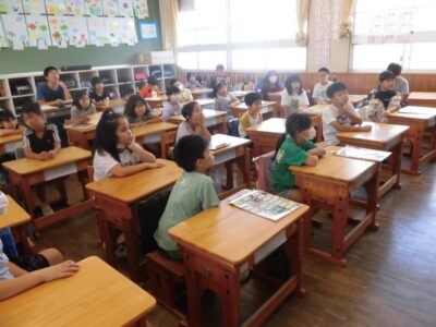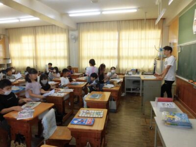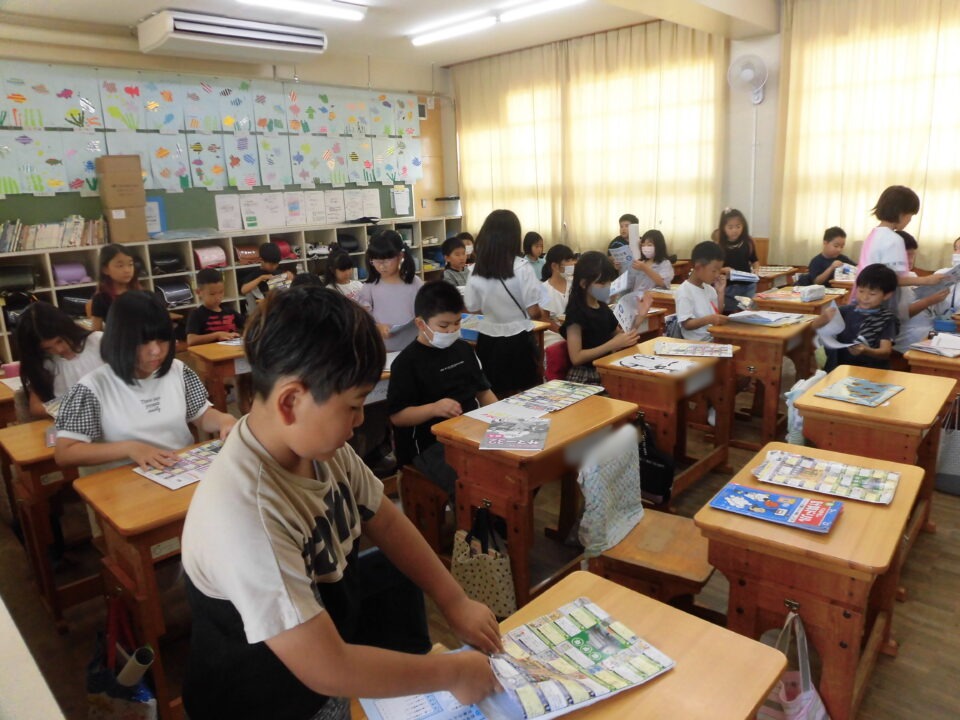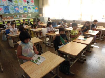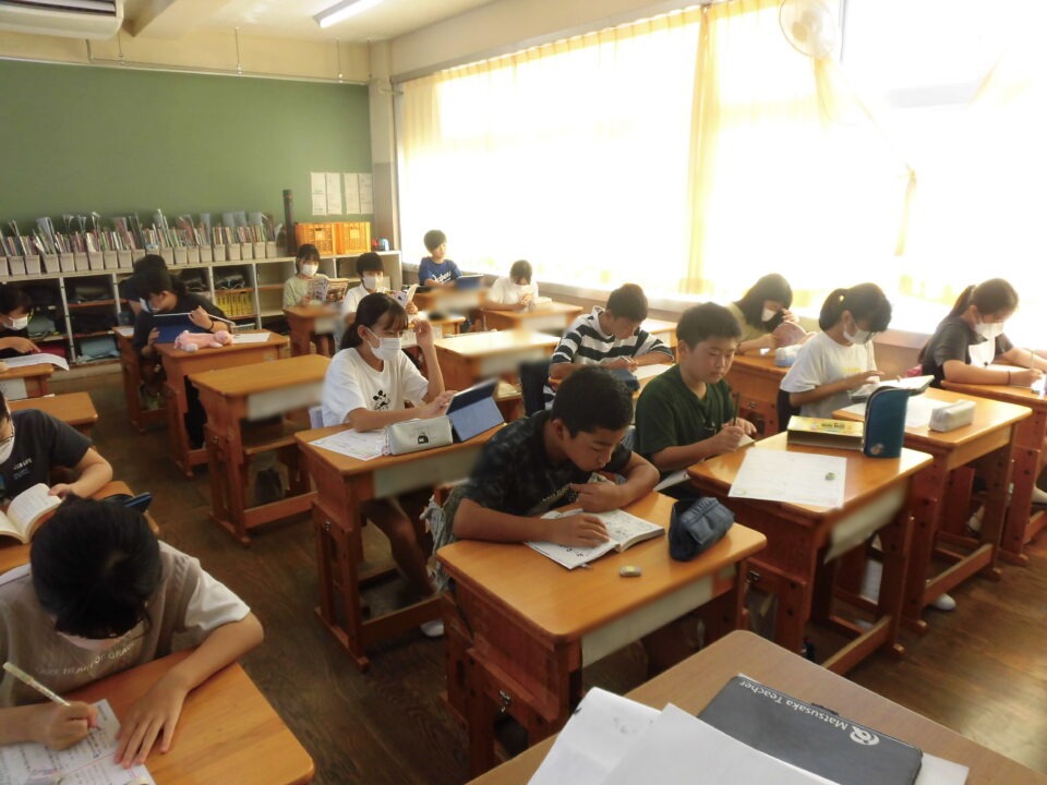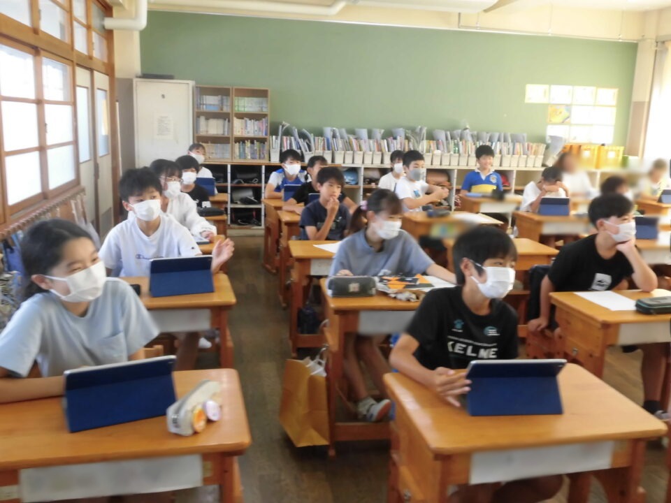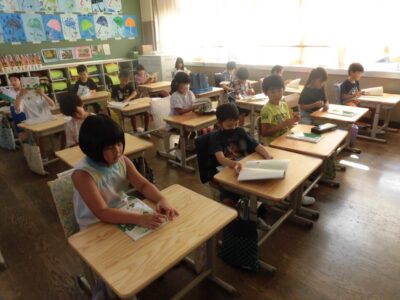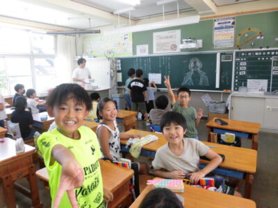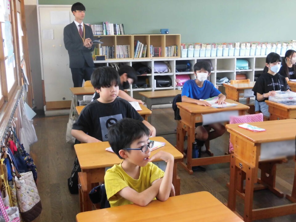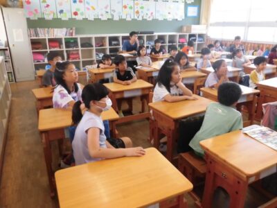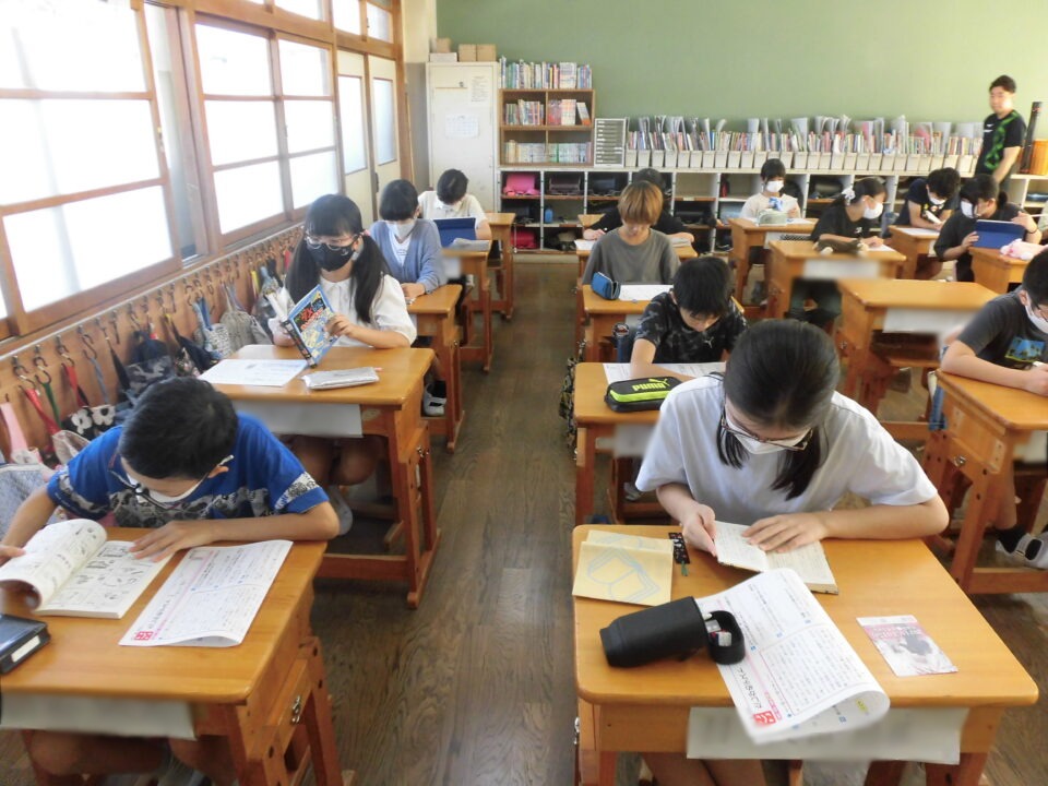 教室では、宿題や習字や絵の作品を担任の先生に提出していたり、さっそく確認テストをしたり、午前中半日とはいえ、クラスで久しぶりに会った友だちと一緒にまた今日から学校で学習モードに切り替えです。