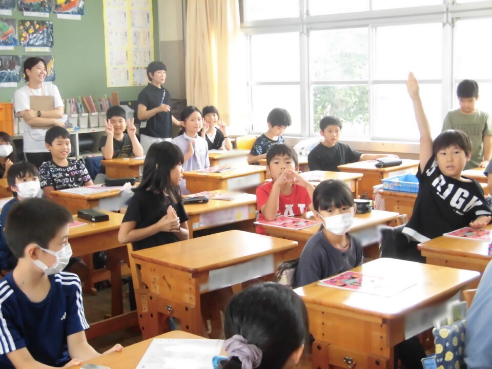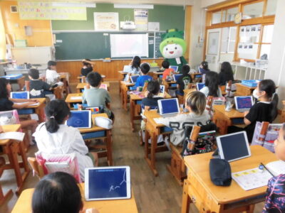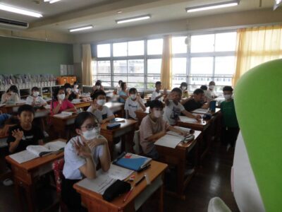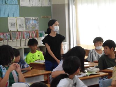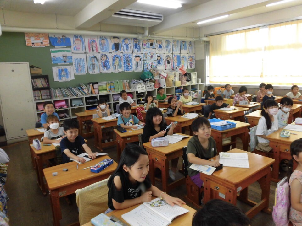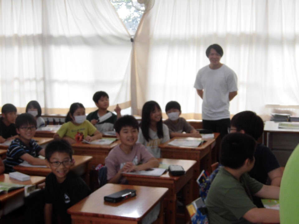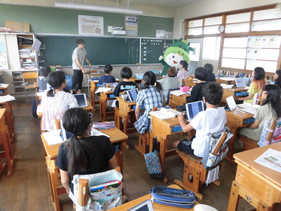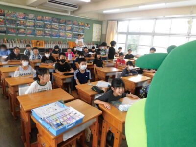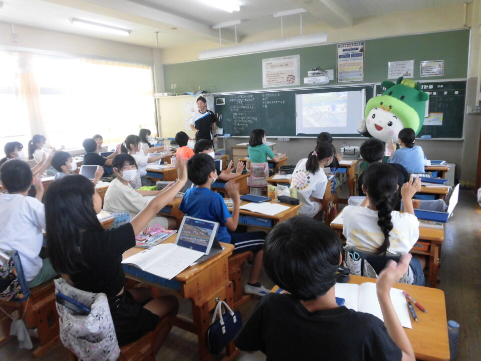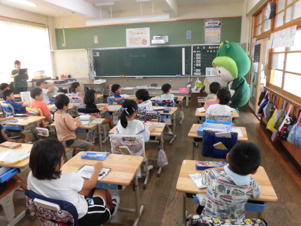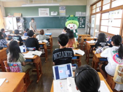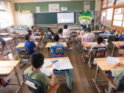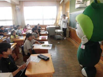 今日は、学校が始まりみんな暑い中がんばっているので、松阪市のマスコットキャラクター”ちゃちゃも”が応援に第四小学校に来てくれました。