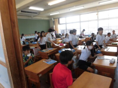 津波発生による二次避難をしました。全員、3階へ避難します。