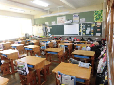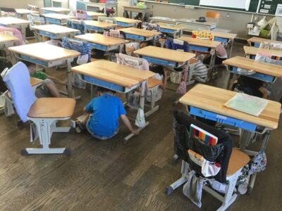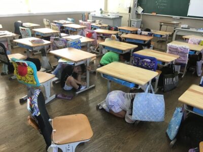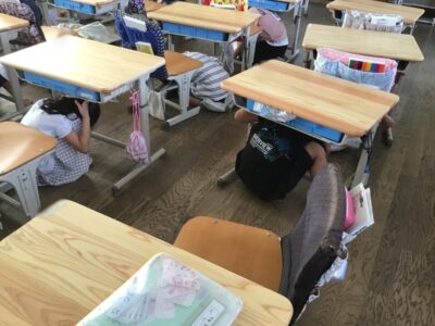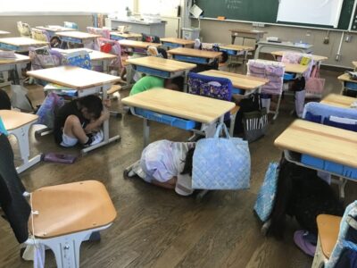 1年生・・・机の下にもぐって頭や身体を守りました。