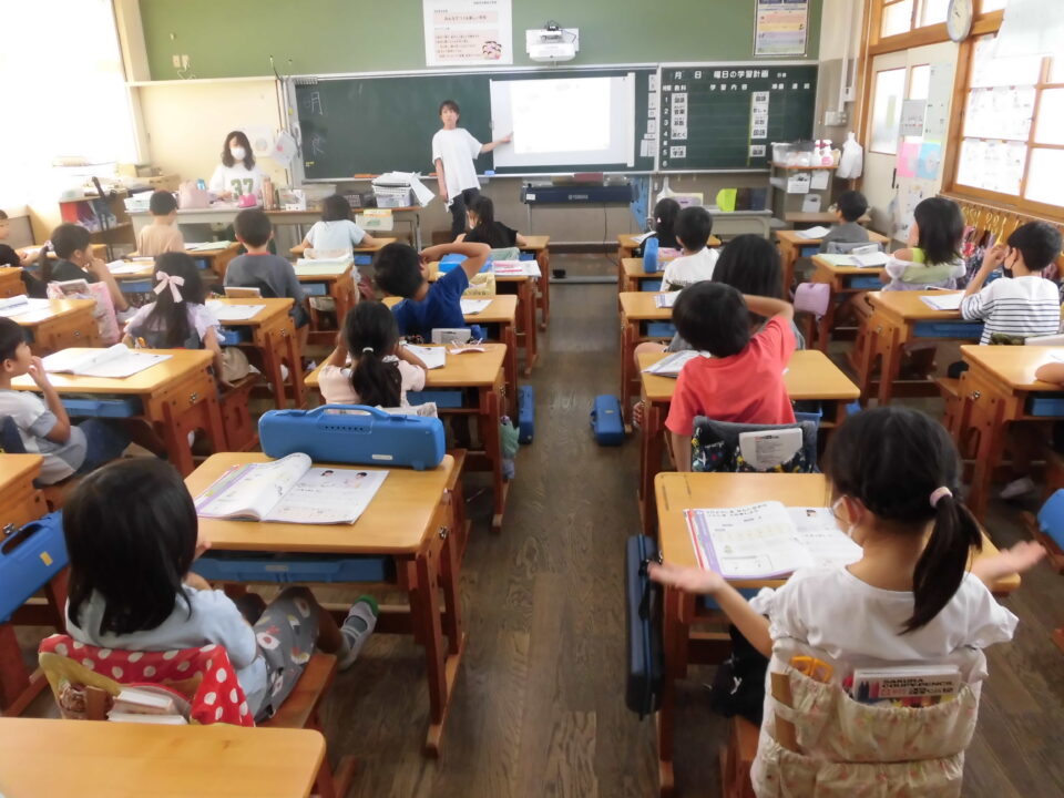 教室内は、エアコンに扇風機併用で乗り切っています。残念ながら、家庭科室や理科室、図工室など特別教室にはエアコンがつけられていないので、エアコンのある部屋でしたり、大型扇風機を活用したりと工夫しなければなりません。