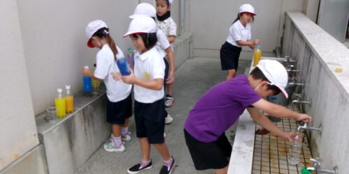 保健委員会では、本校の薬剤師さんを招いて手洗いの仕方について学びました。