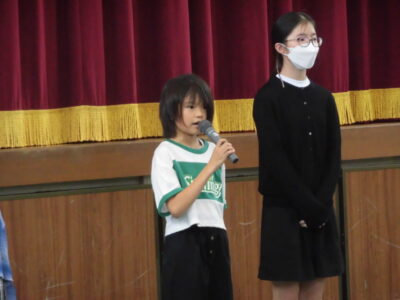 最後に、前期児童会役員退任のあいさつがありました。