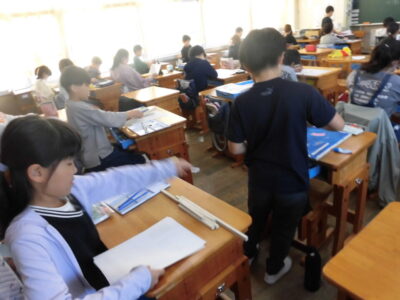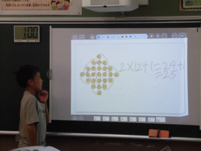隣のクラスは、算数でした。自分の考えを発表していました。