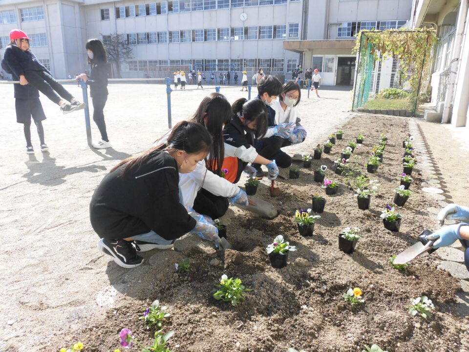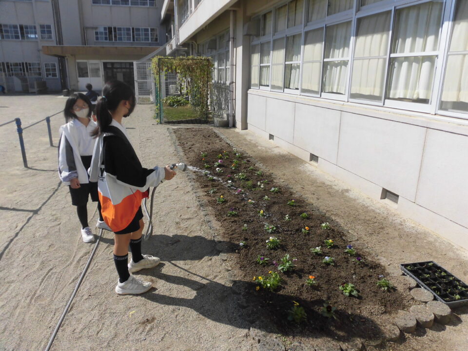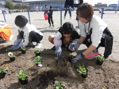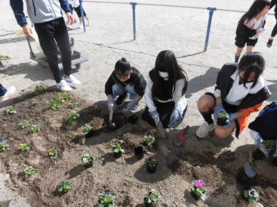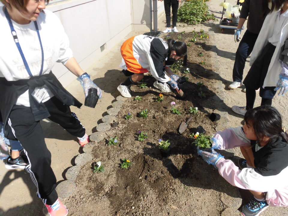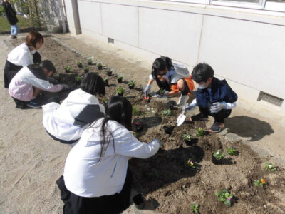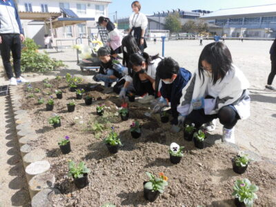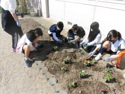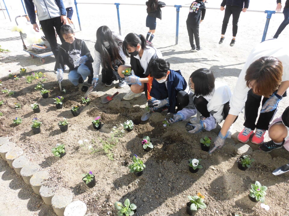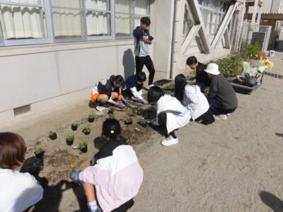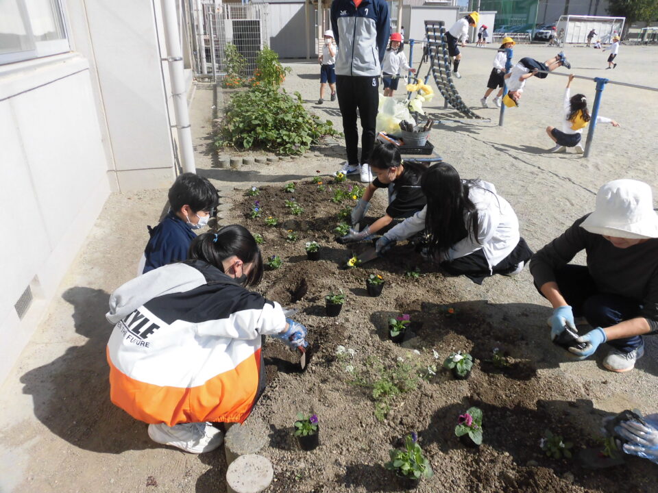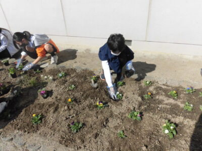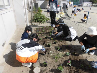 20分休みに栽培委員会の5年生の子たちが集まり、学級園にパンジーを植える活動をしました。