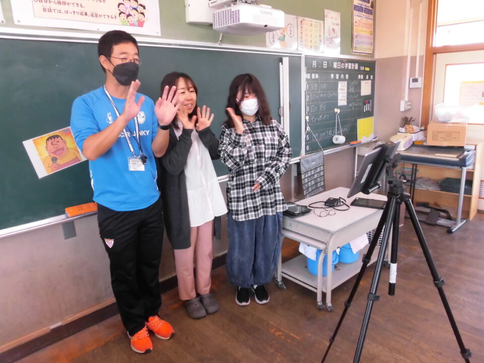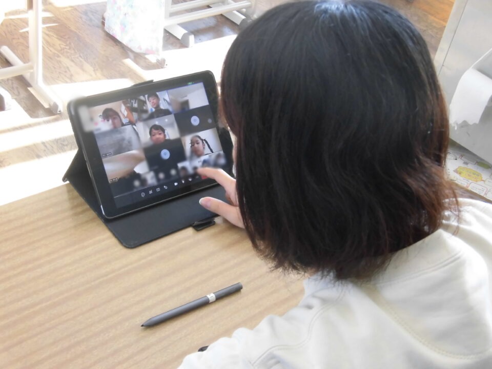それぞれのクラスで、担任の先生とタブレット端末のTeamsを通じて顔を合わせました。