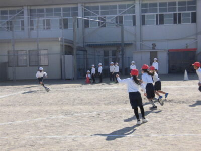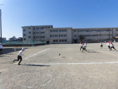 年生ねんせいでは、体育たいいく時間じかんにボール運動うんどうとしてキックベースボールをしています。