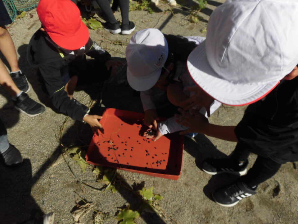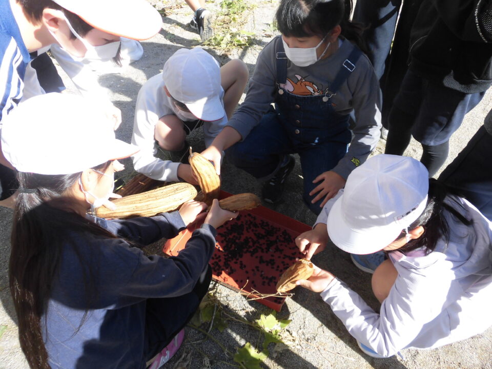 あき季節きせつは、いもほりやへちまの種取たねとりなどもおこなわれますね。季節きせつかんじますね~~。