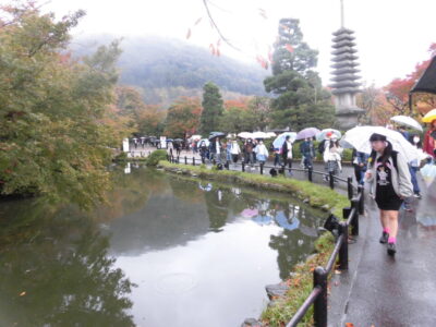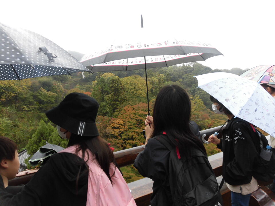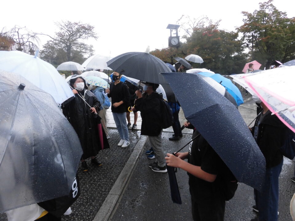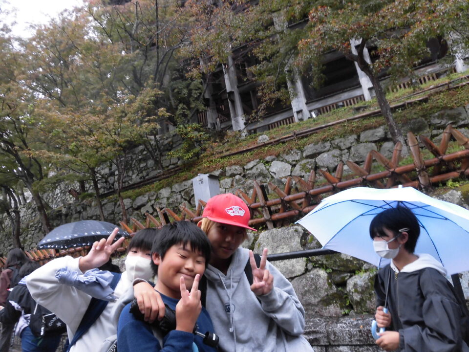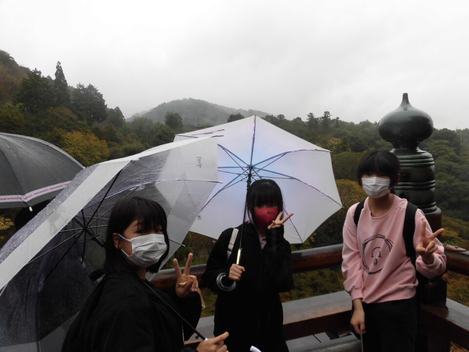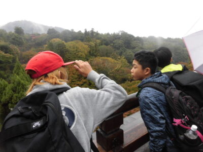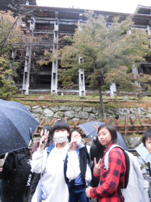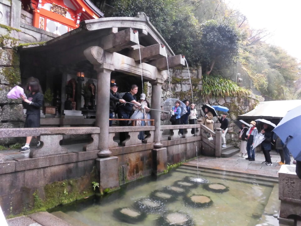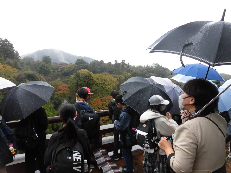 清水寺の駐車場に着くと、観光や修学旅行の人などたくさんの人でにぎわっていました。そのうえ小雨がぱらついていてたいへんでした(>_<)