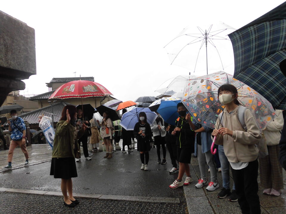 バスでのDVD鑑賞後、京都に入るとバスガイドさんから京都についていろいろ教えていただきました。