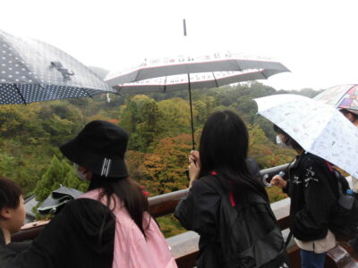 バスでのDVD鑑賞後かんしょうご京都きょうとはいるとバスガイドさんから京都きょうとについていろいろおしえていただきました。