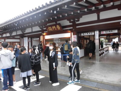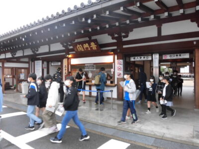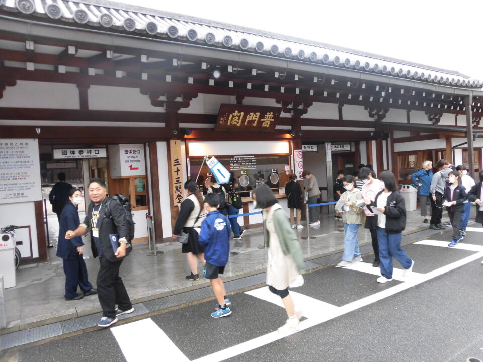 続いて、三十三間堂へ見学に行きました。残念ながら、中では撮影禁止でした。中庭では、ライオン写真館さんに集合写真を撮っていただきました。