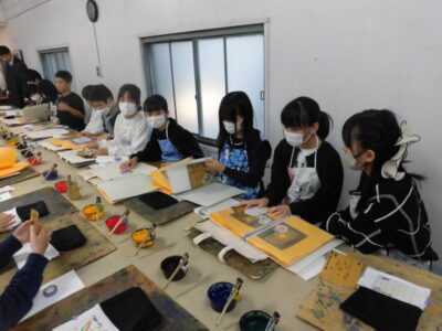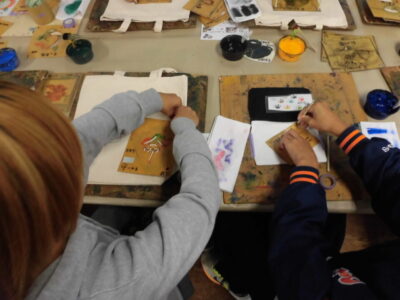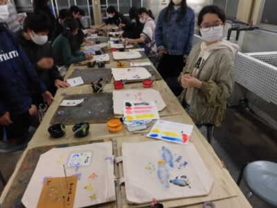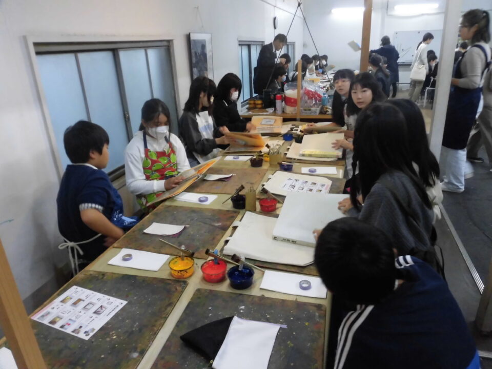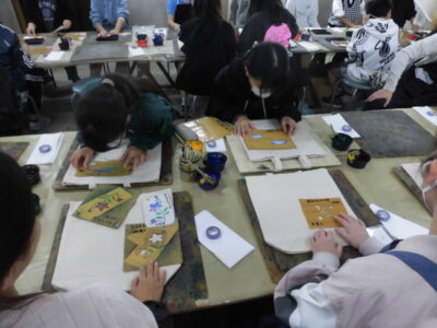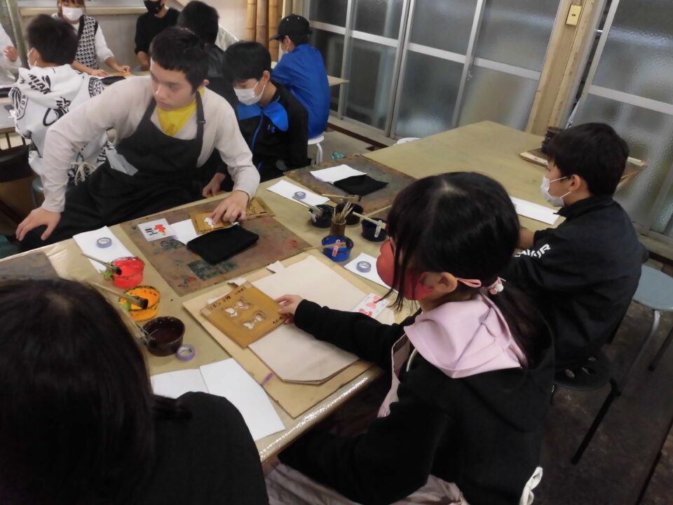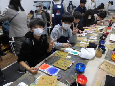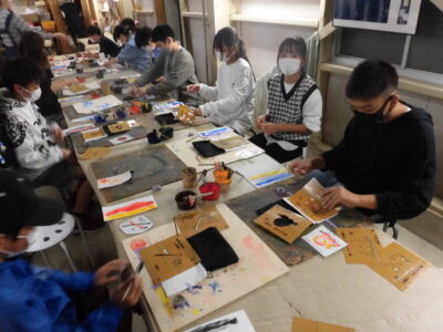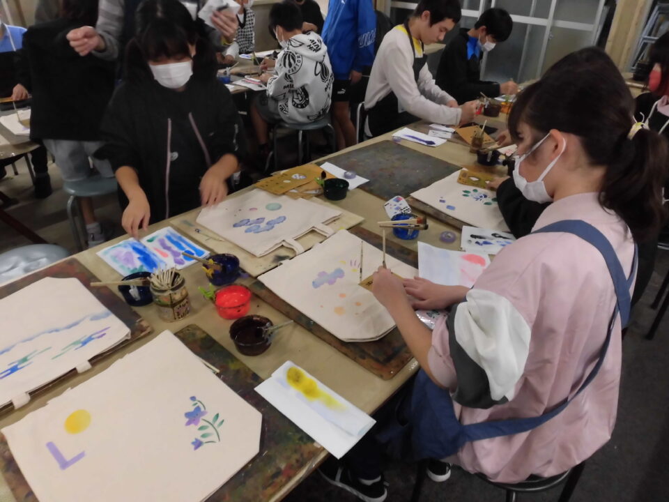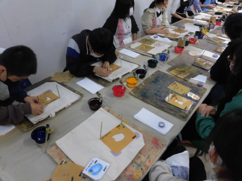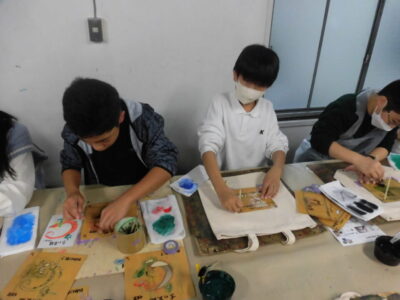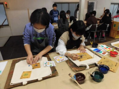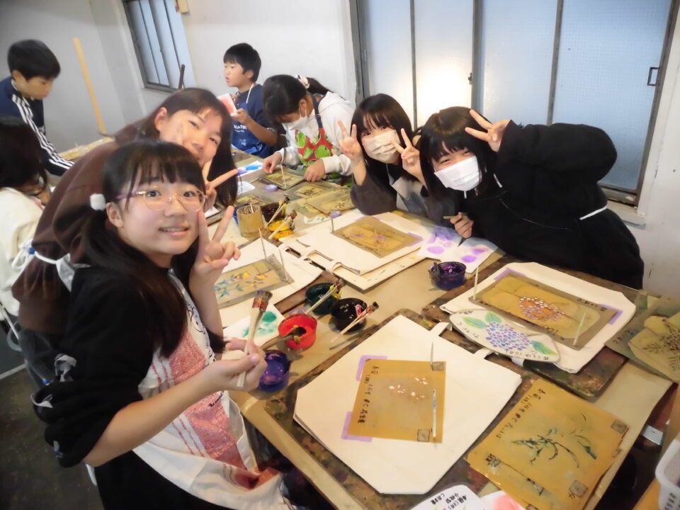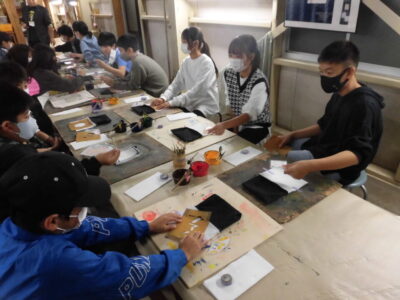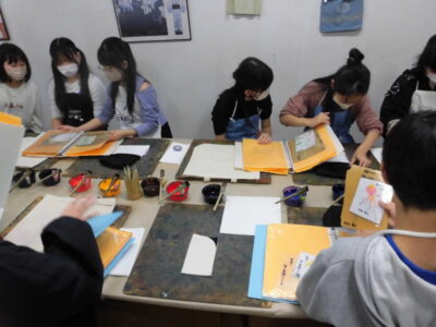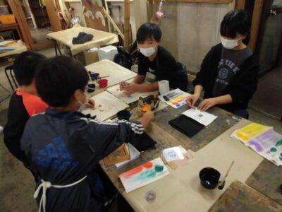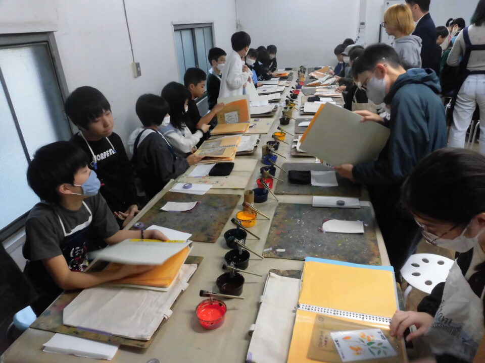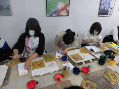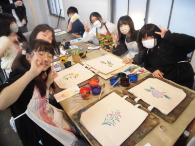 次に、丸益西村屋さんへ行き、友禅染めの体験をしました。