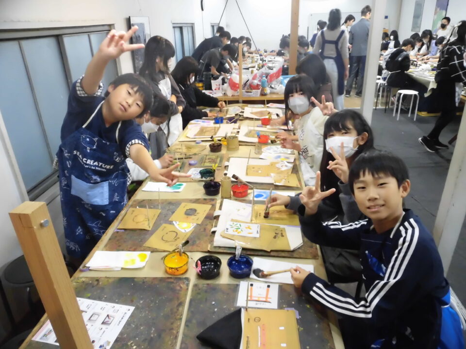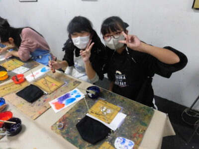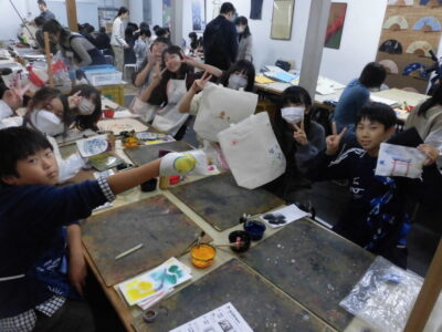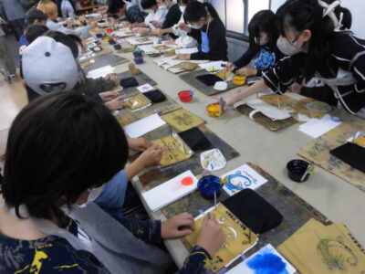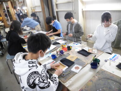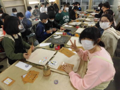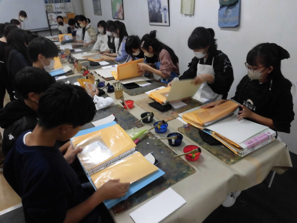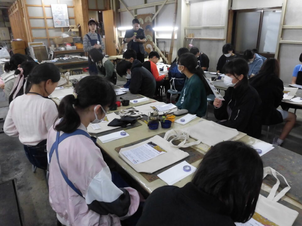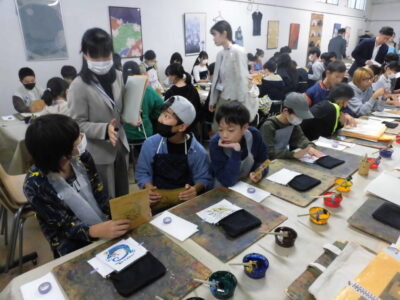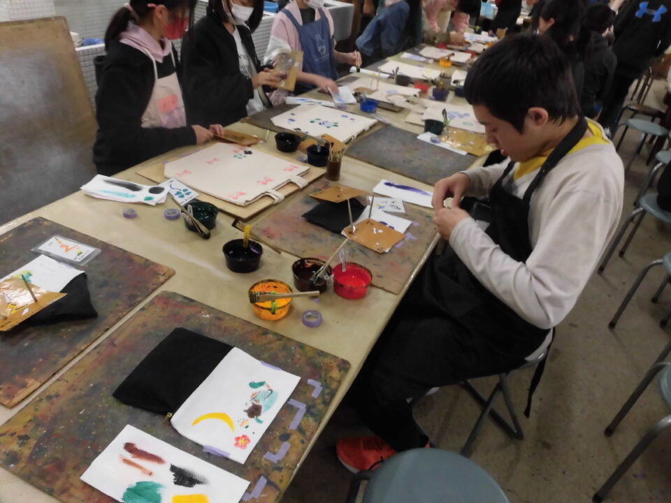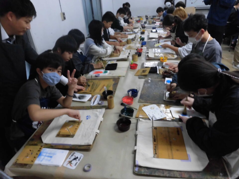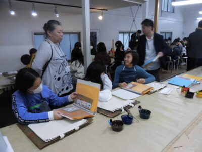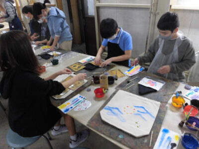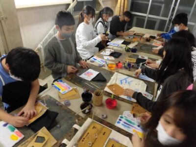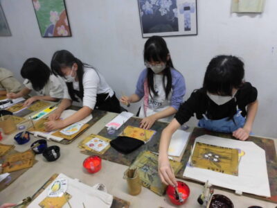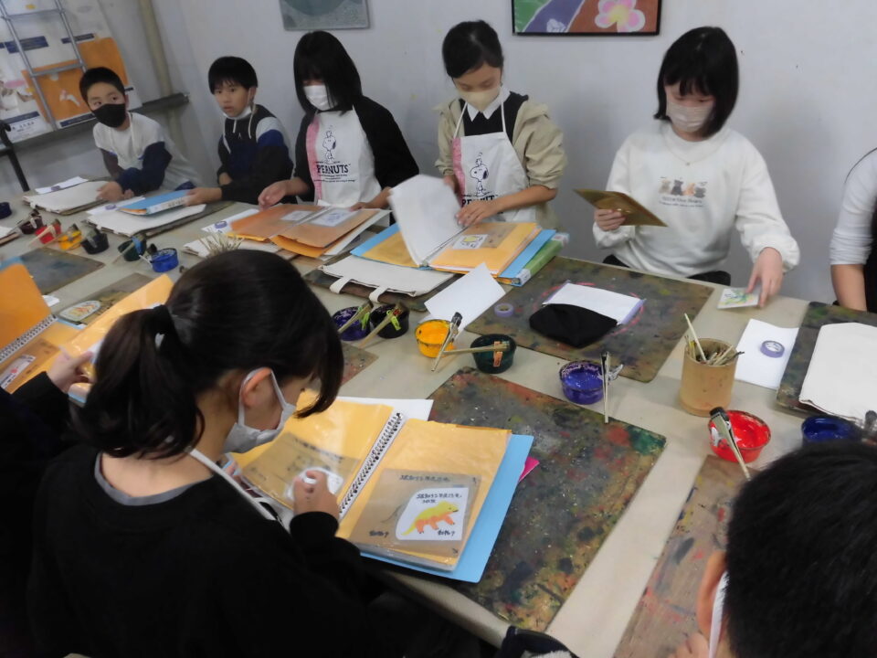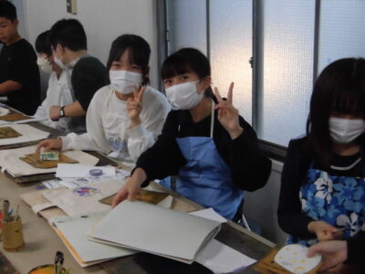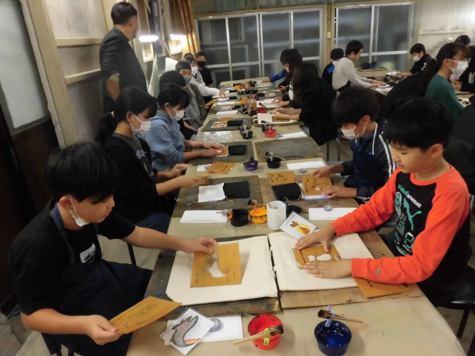 次に、丸益西村屋さんへ行き、友禅染めの体験をしました。