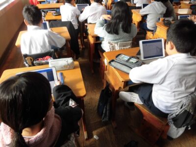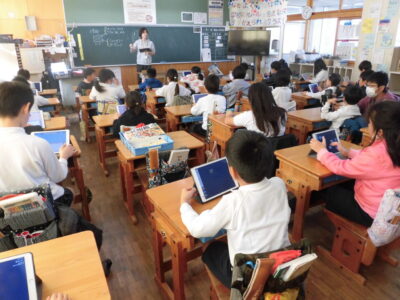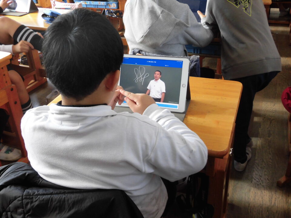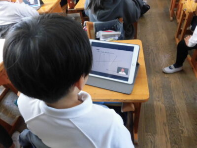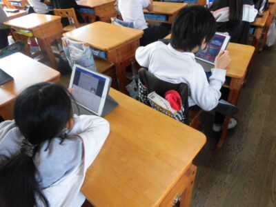 4年生では、スタディサプリをしていました。算数の時間に学習したことの復習をしていました。
