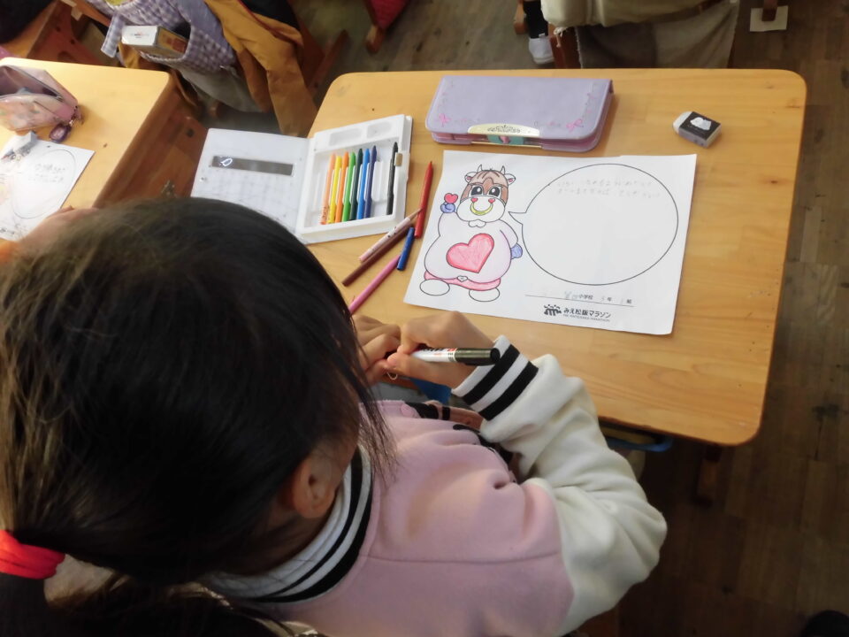 『みえ松阪マラソン』のメッセージを心を込めて書いているクラスもありました。全校の子どもたちが12月17日(日)に行われる『みえ松阪マラソン』の応援メッセージを書いています。体育委員会の子たちは、応援動画も撮りました。