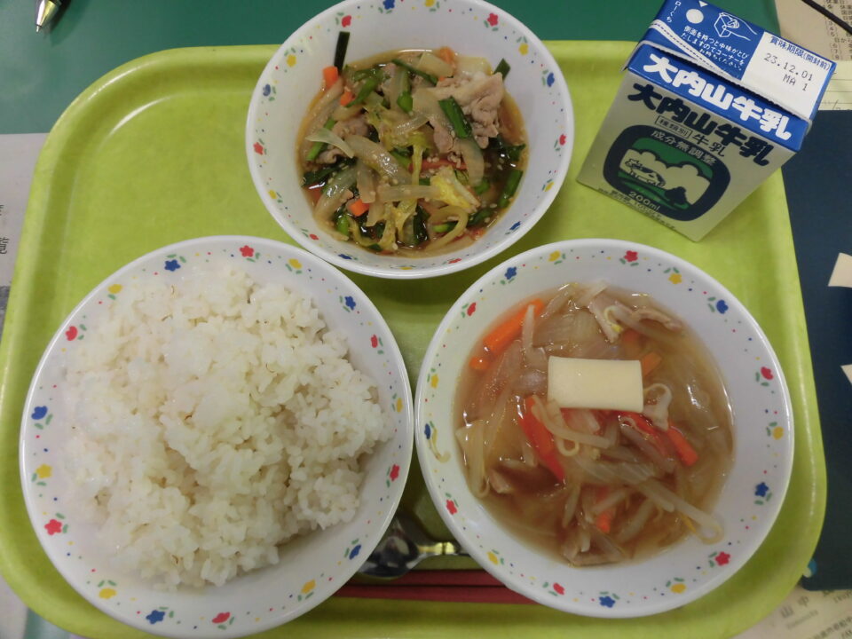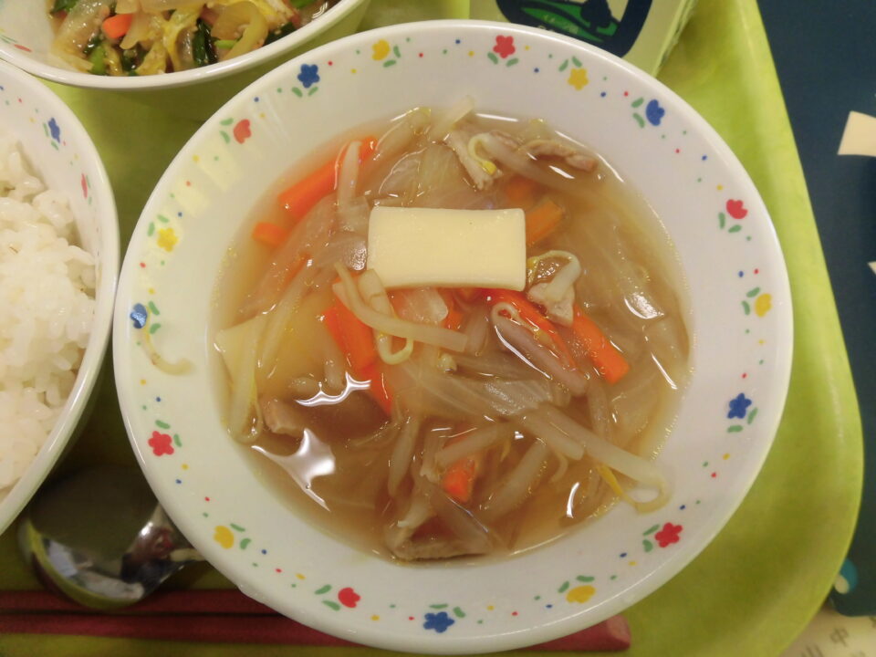 今日の給食は、ご飯(麦入り)、牛乳、プルコギ、ワンタンスープでした。