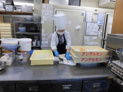 ケーキなどお菓子かし販売はんばいするアンデルセンさん