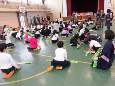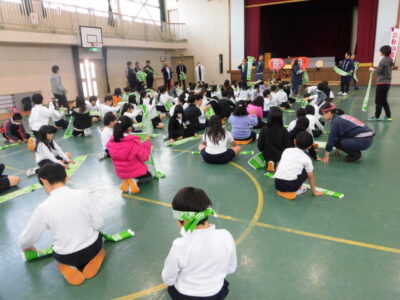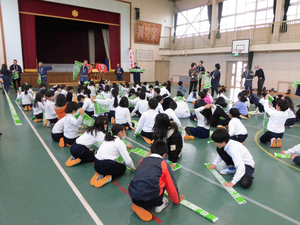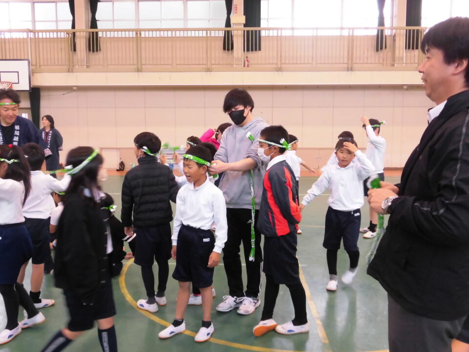 てぬぐいをいただき、ハチマキのしめ方を教わりました。