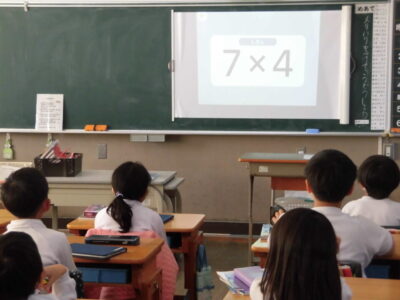 現在、2年生の算数では九九を覚えるために頑張っています。お家でも子どもたちが唱えているのを聞いていただいているのではないでしょうか。