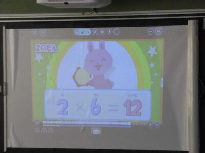 そして、次は、九九の歌を歌いました。ノリノリの曲でみんな身体でリズムをとりながら、九九を唱えながら歌っていました。
