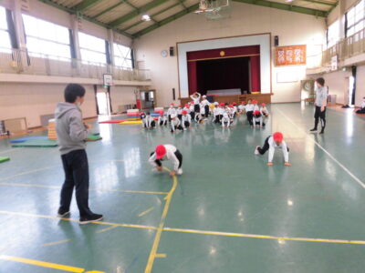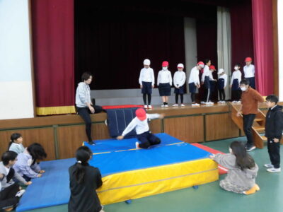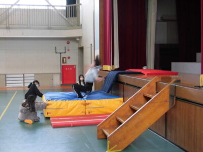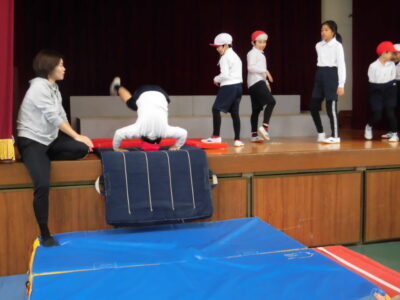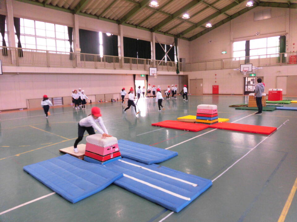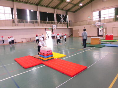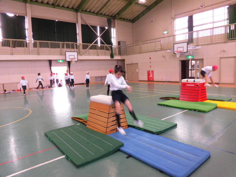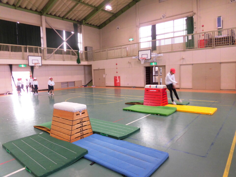 3年生では、腕で体を支えて体重移動する練習をしてから、跳び箱の練習に入りました。