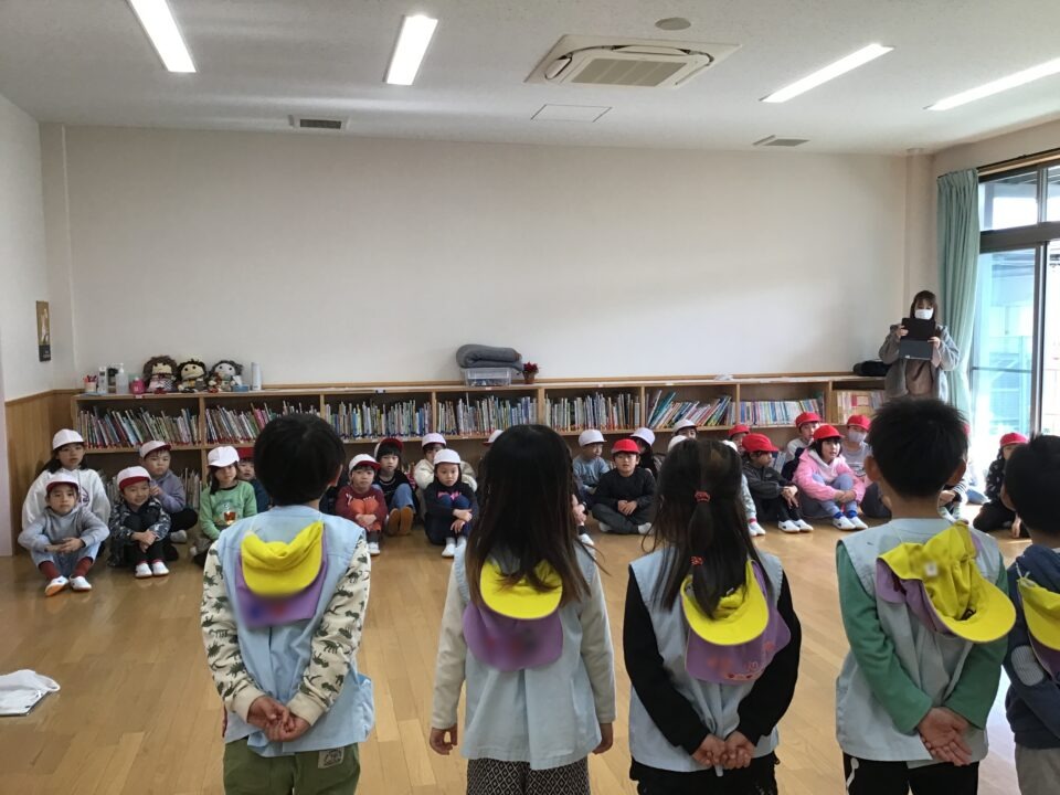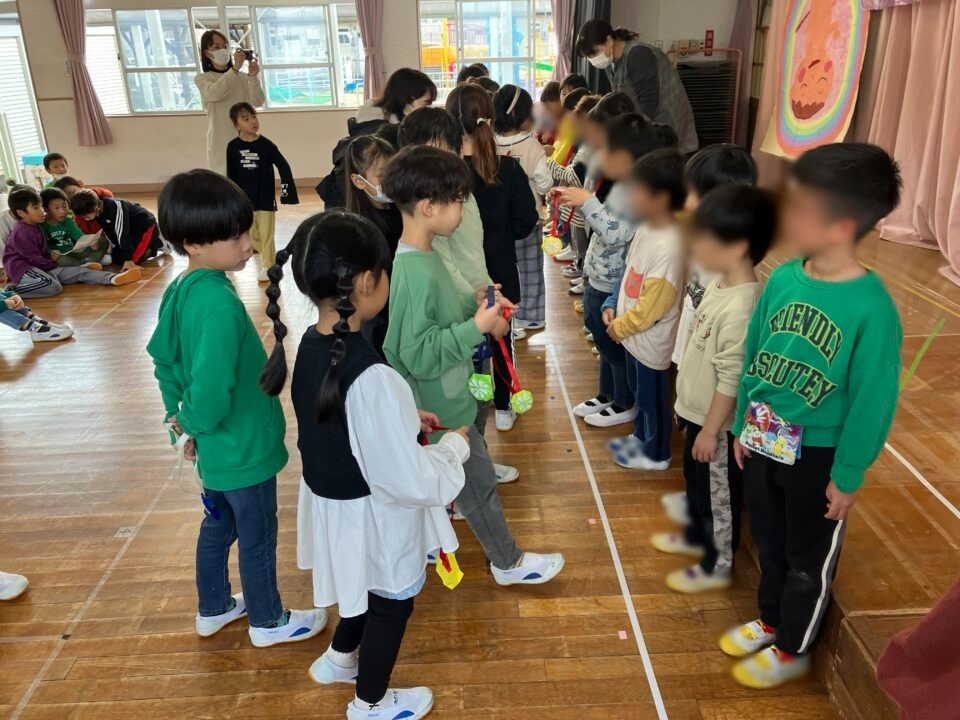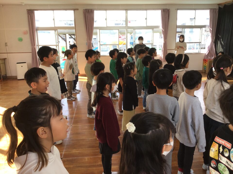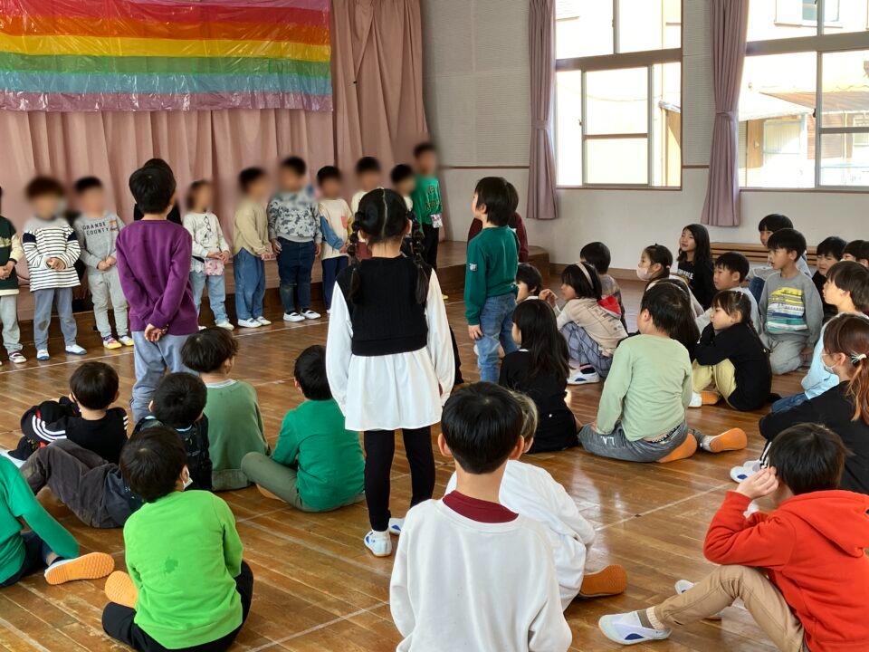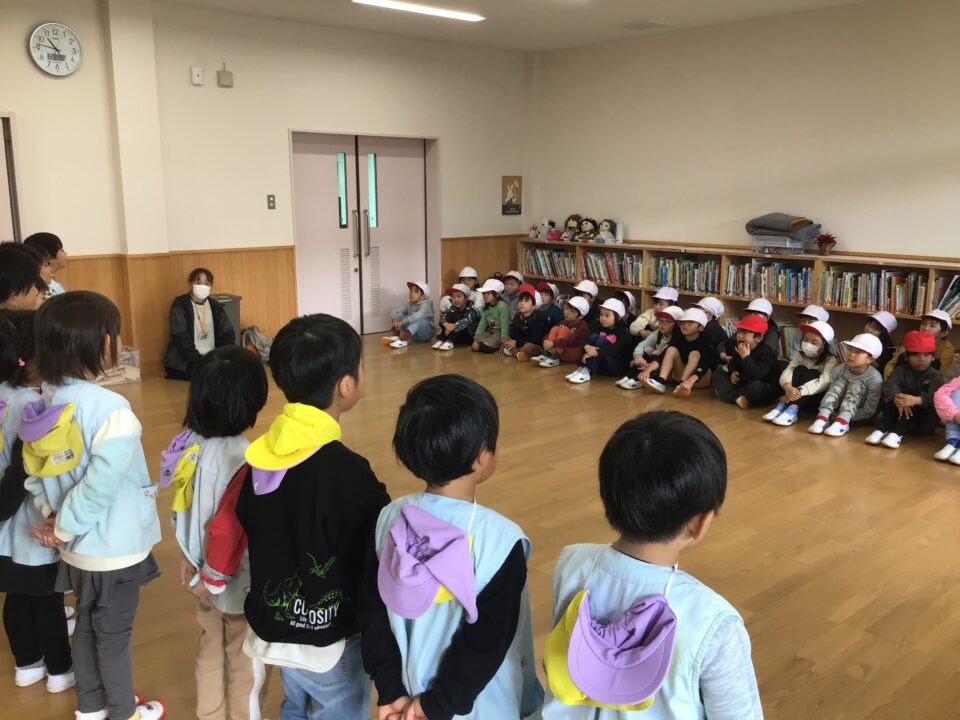 今日は、1年生の子たちが近隣の保育園と幼稚園の年長さんと交流をしました。