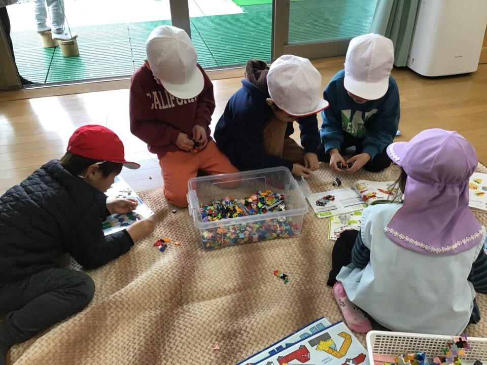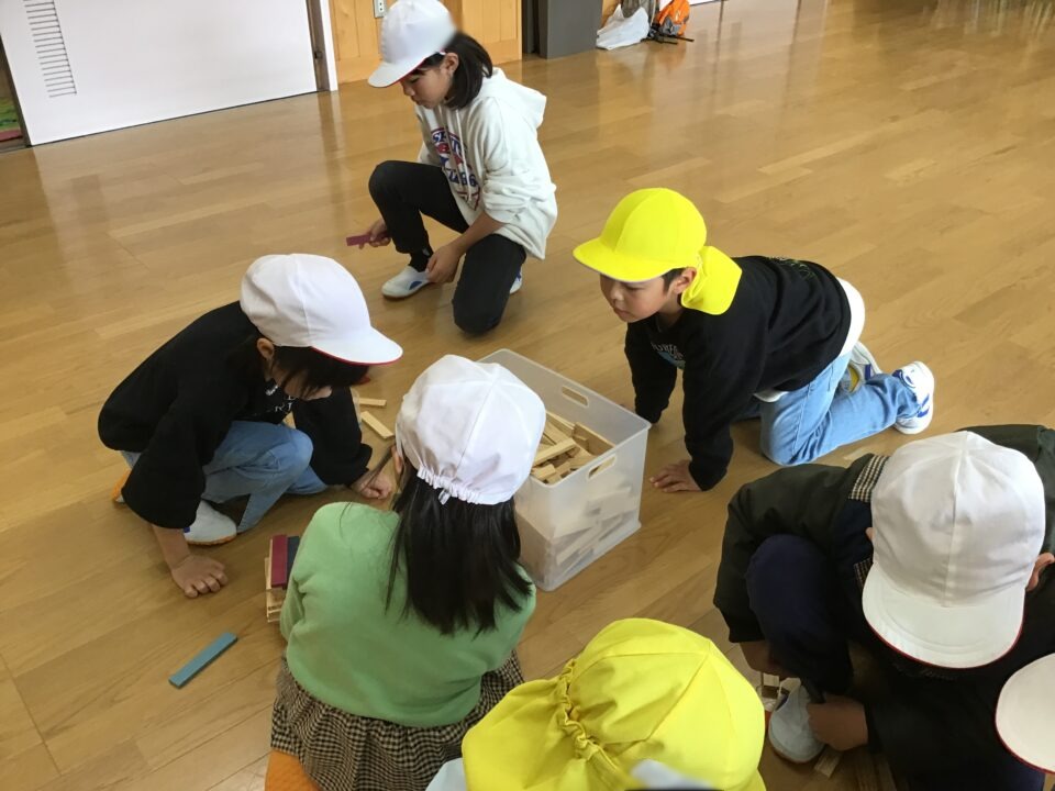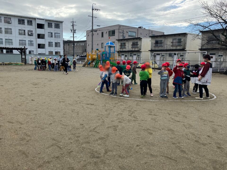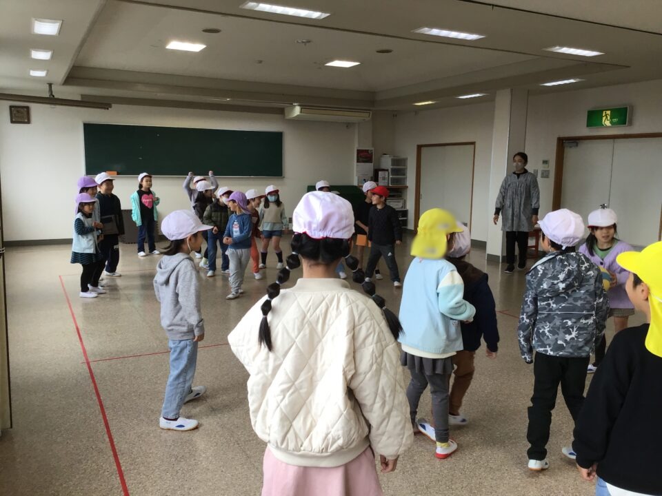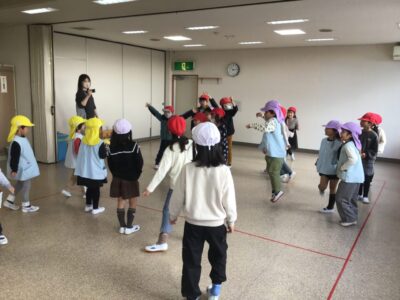 今日は、1年生の子たちが近隣の保育園と幼稚園の年長さんと交流をしました。