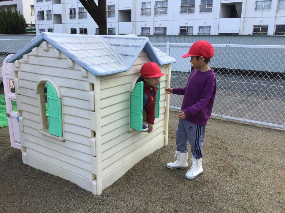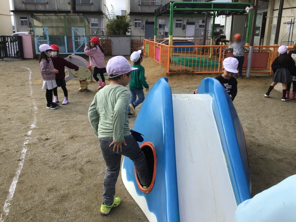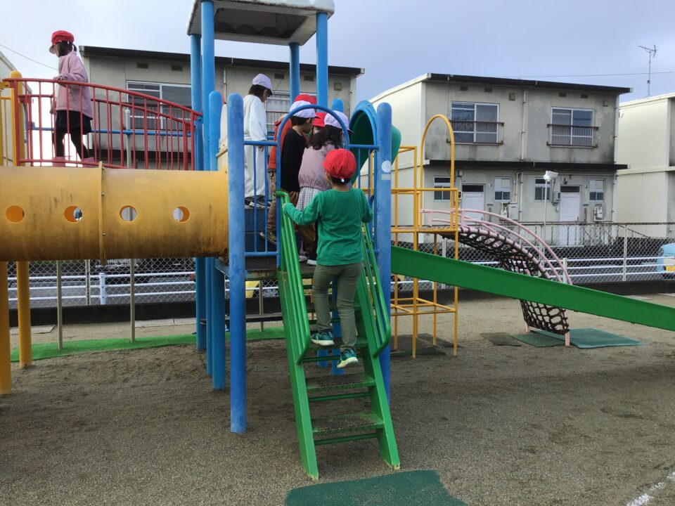 保育園でも一緒に楽しく過ごしました。園庭の遊具で遊ばせてもらったり、園庭をかけまわったりとなつかしい様子でした。