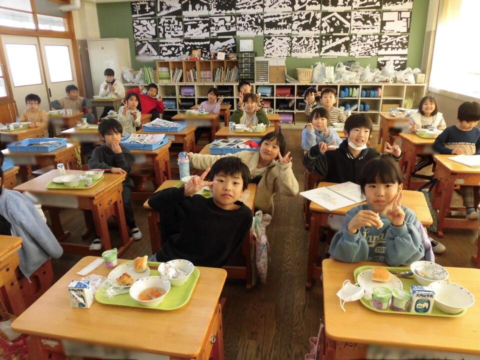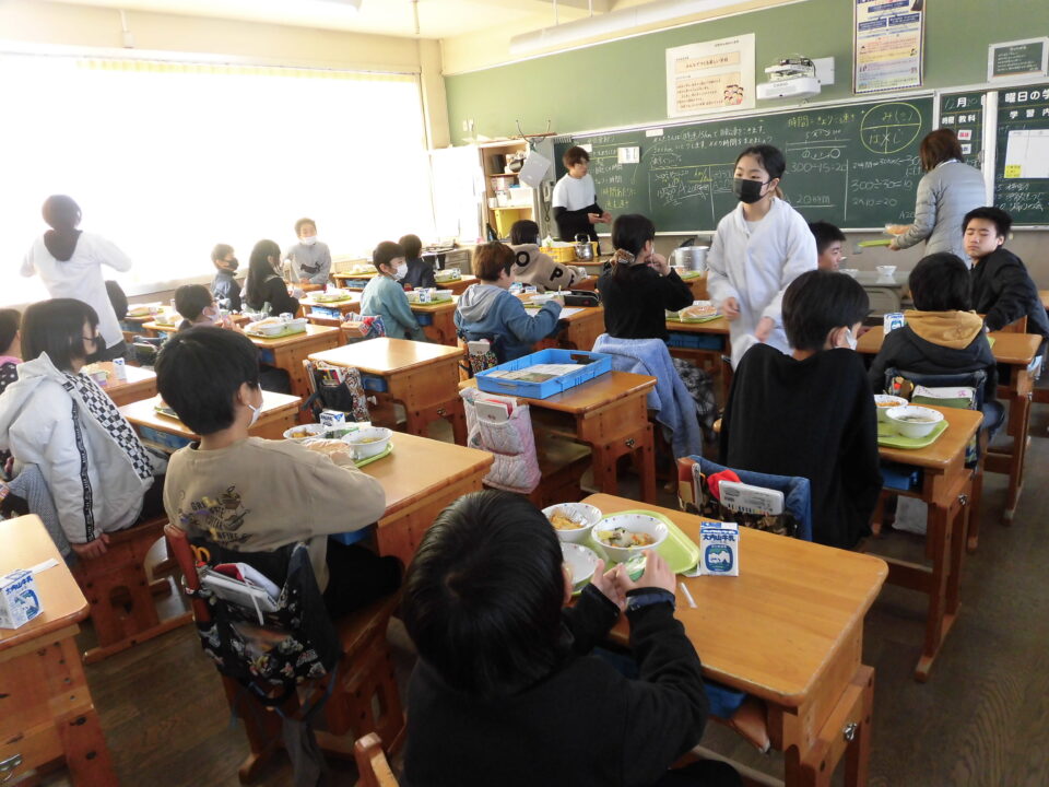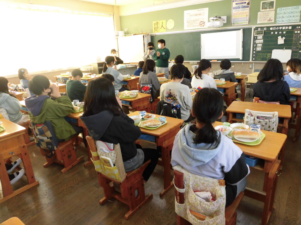 5年生は、給食準備をして今から「いただきます!」のあいさつです。