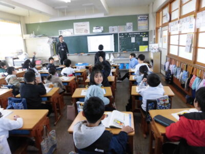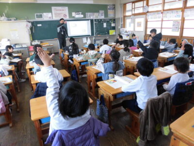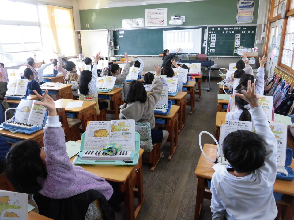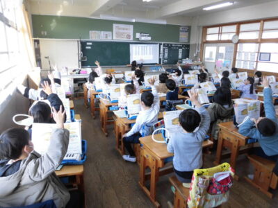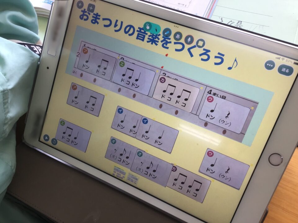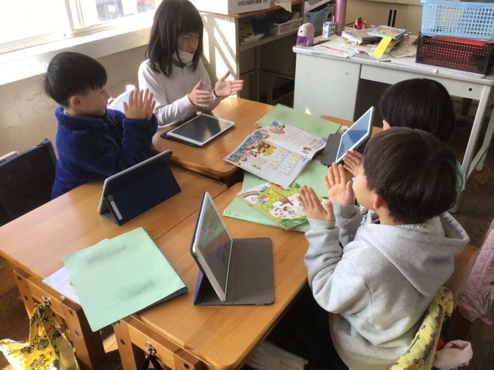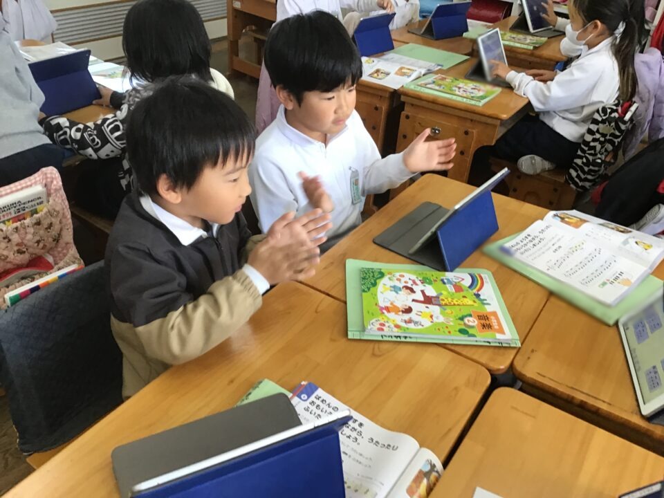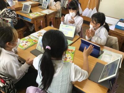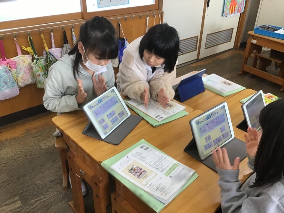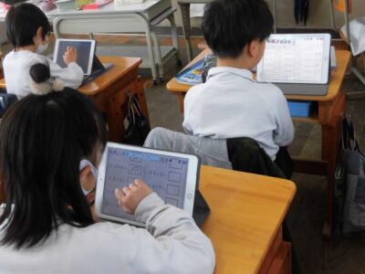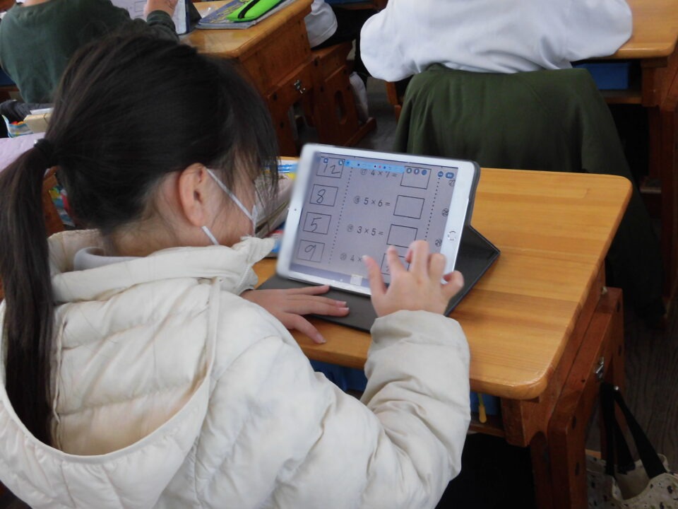 2年生では、九九の練習をするのに、問題を先生から子どもたちのタブレットに配られて始めていました。