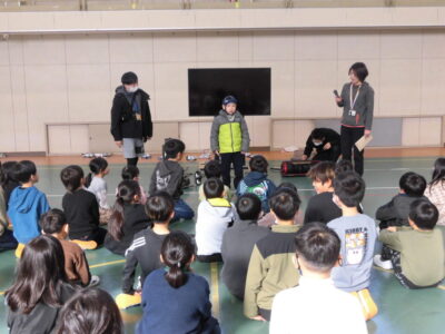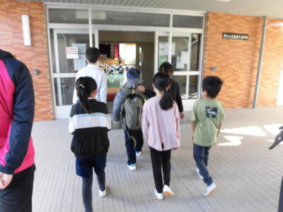 まずは、学級委員がっきゅういいんさんが校長室こうちょうしつへおむかえにき、体育館たいいくかん案内あんないしました。