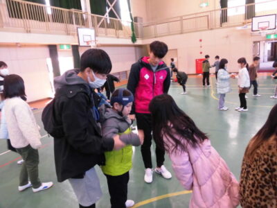 今日きょうは、校区こうくにはんでいて、松阪まつさかあゆみ特別支援学校とくべつしえんがっこうかよっているおともだちが先生せんせい一緒いっしょあそびにてくれました。