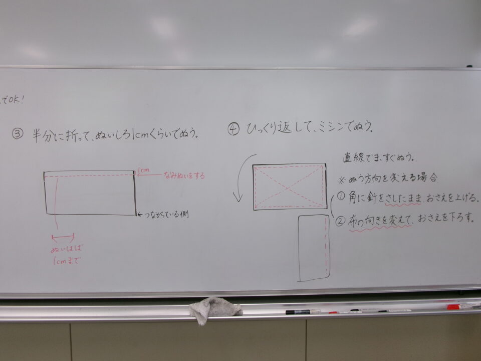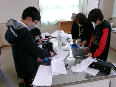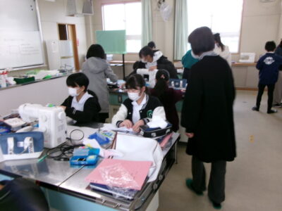 ミシンを使ったり、針と糸も使ったりするので、担当1人ではたいへんな中、CSボランティアさんに助けていただき、進めています。