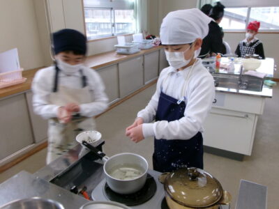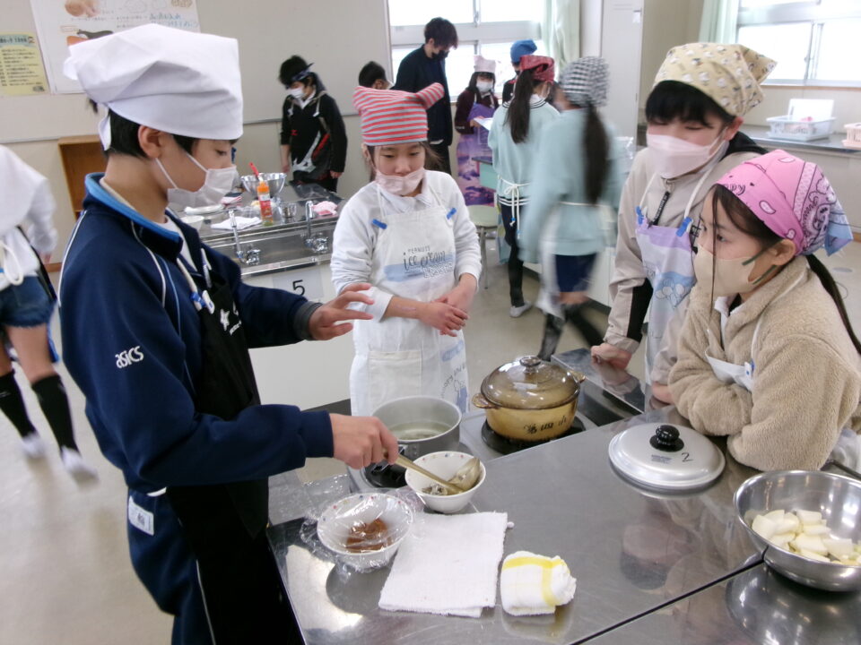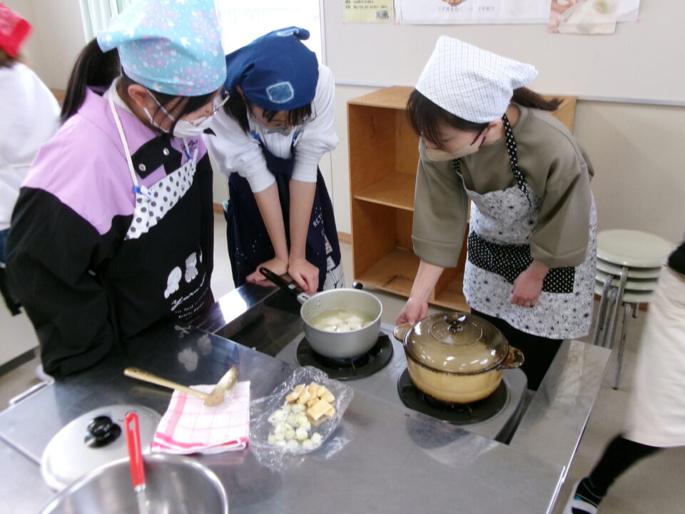 家庭科調理実習(ご飯、みそ汁) 5-1